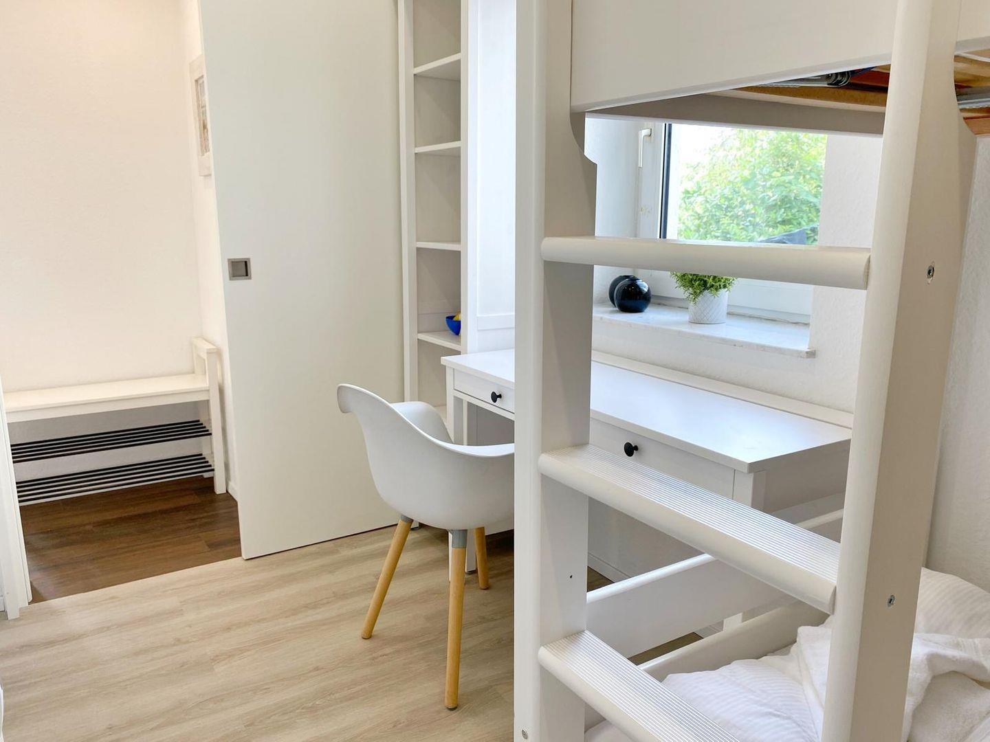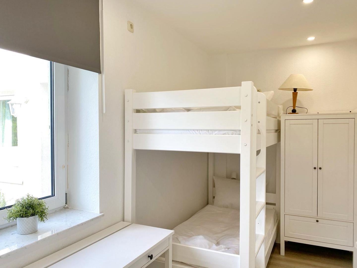 Es gibt ein Schlafzimmer mit Doppelbett und ein zweites Schlafzimmer / Kinderzimmer mit Etagenbett.