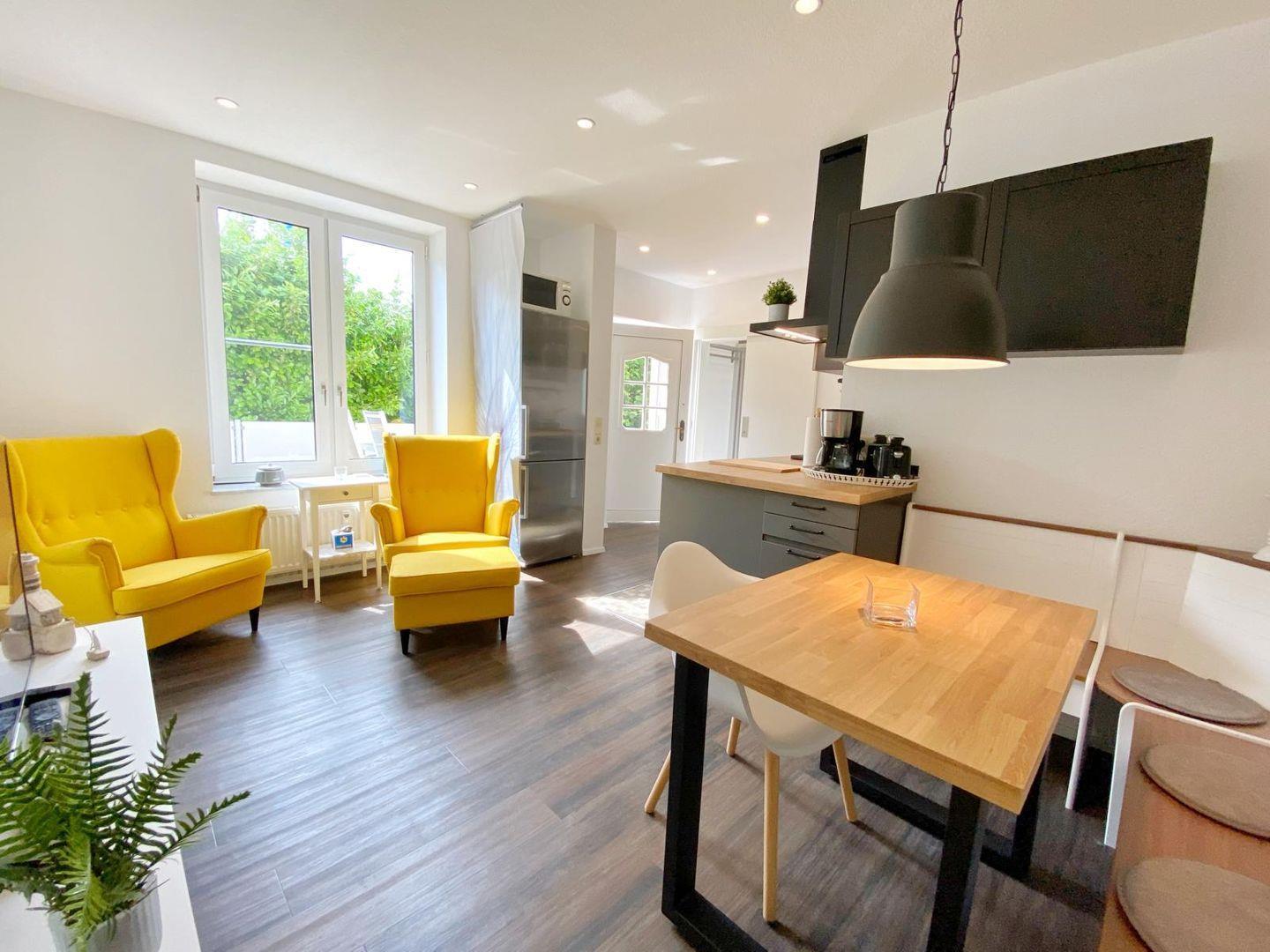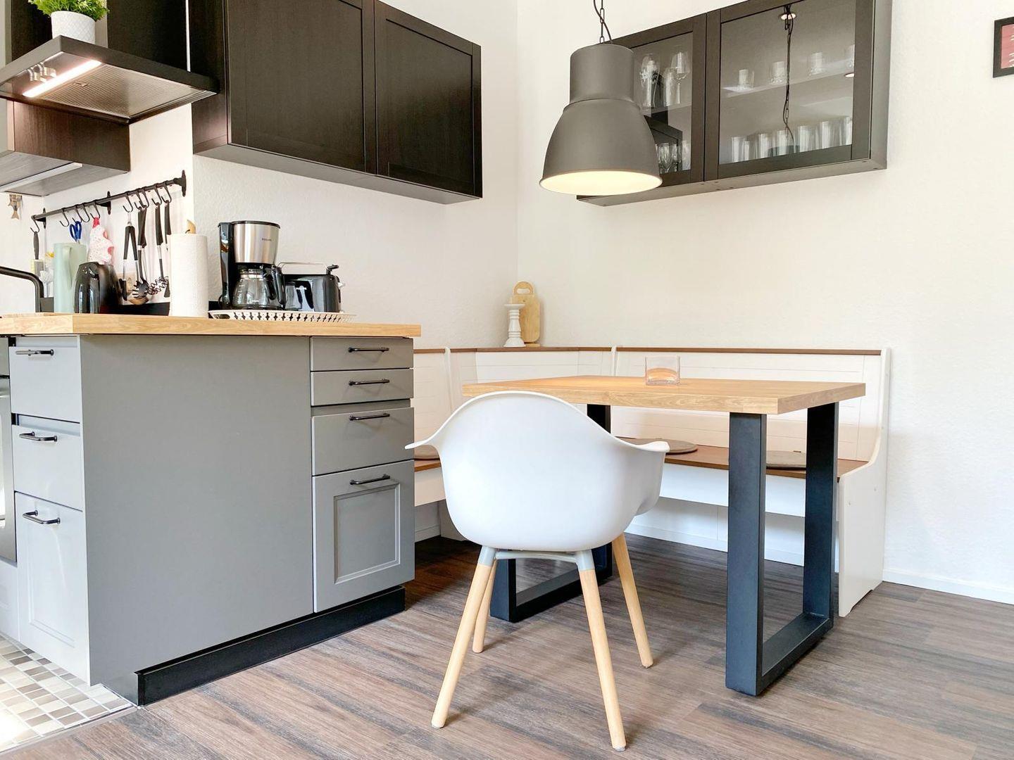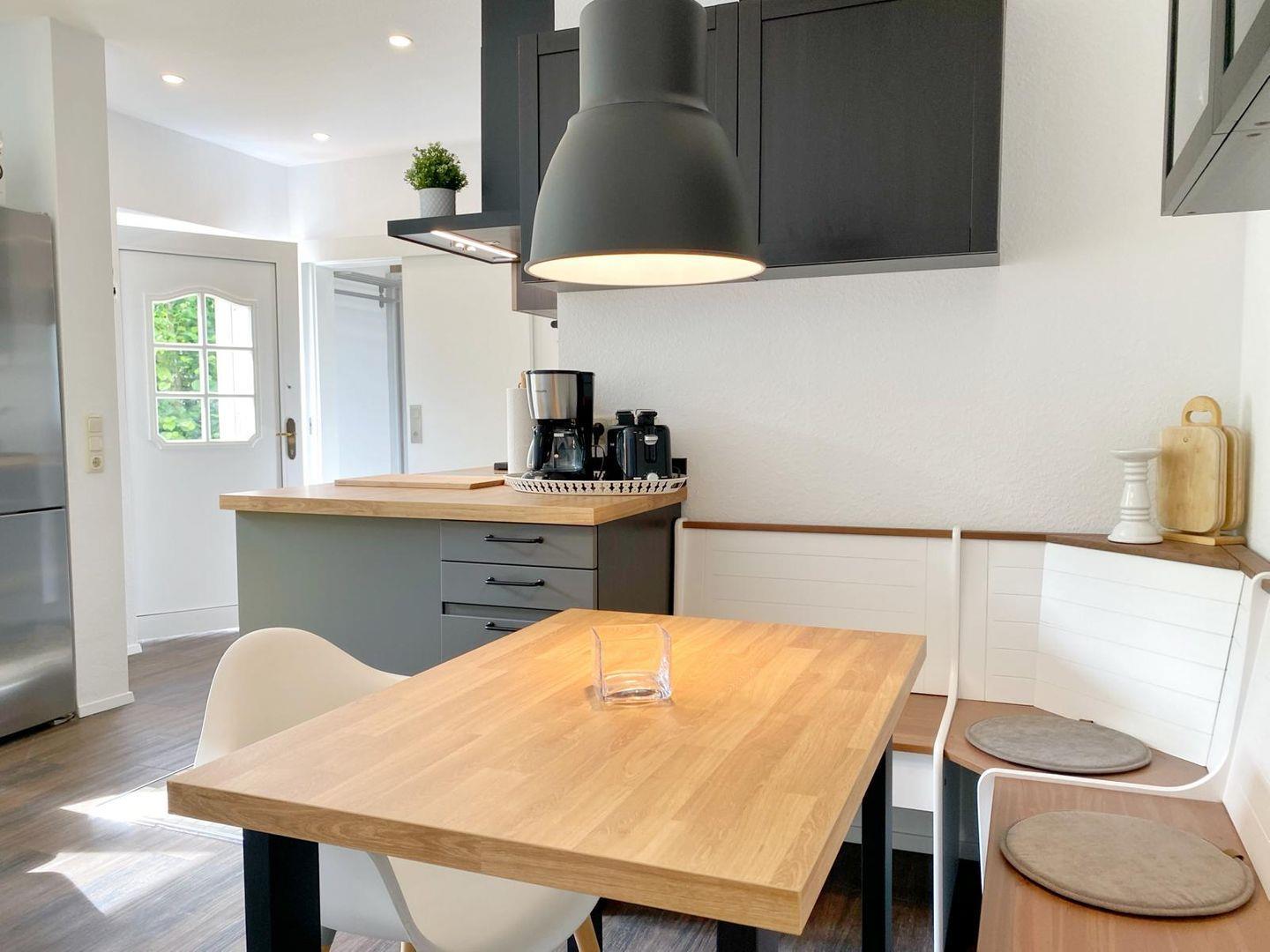 Das gemütliche Wohn-Esszimmer mit integrierter Küche ist hell und modern eingerichtet und bietet auf wenig Raum allen Komfort, den man sich im Urlaub wünscht.