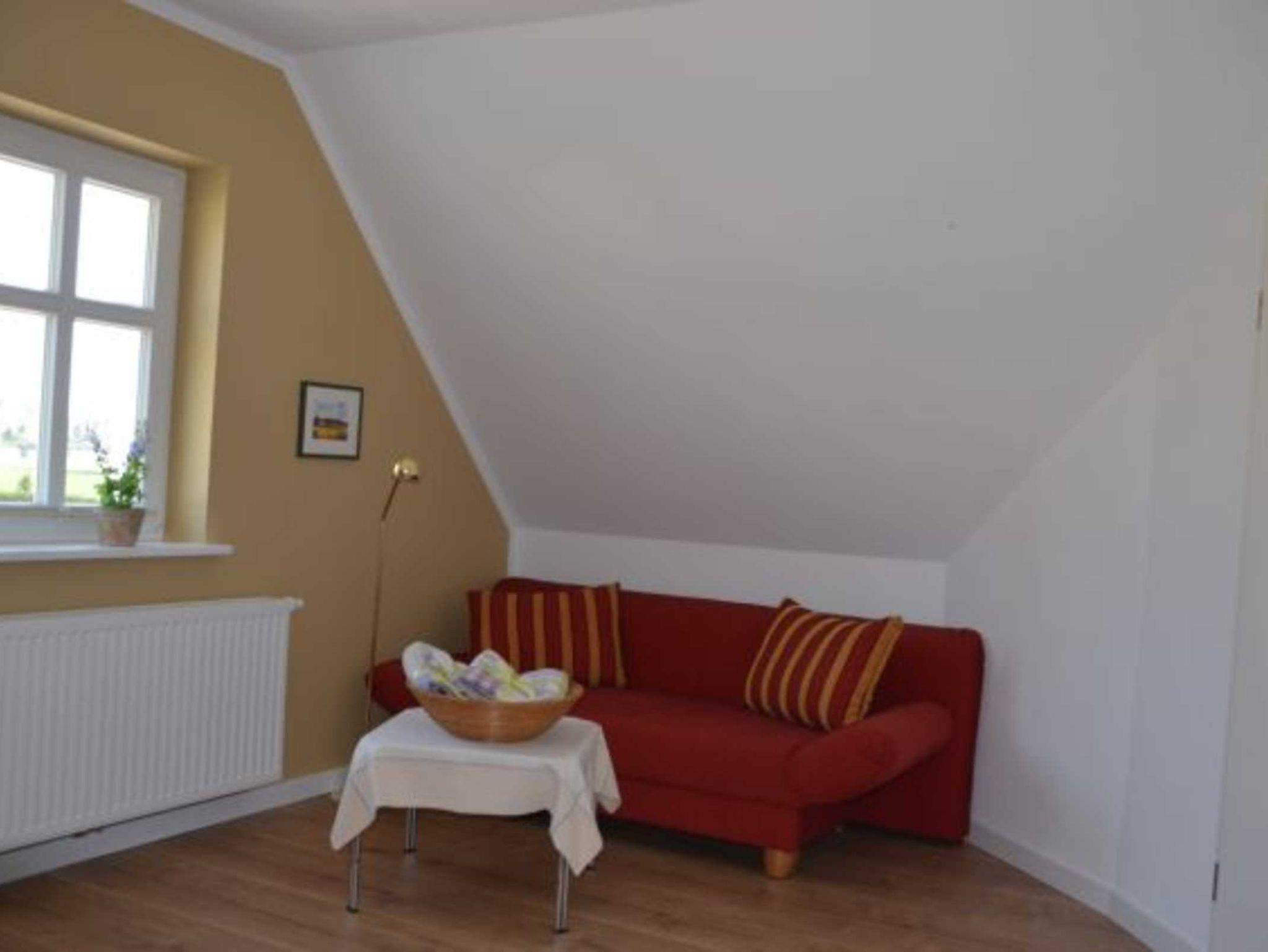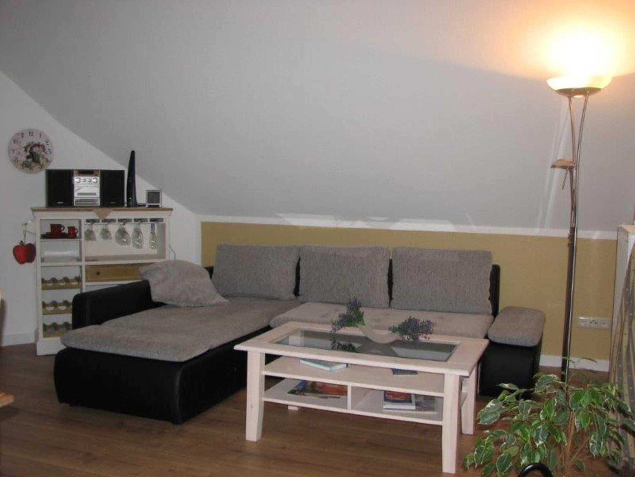 Die Ferienwohnung geht über zwei Etagen. In der unteren Etage befindet sich der Eingangsbereich. Hier können zum Beispiel die Fahrräder abgestellt werden. Im Obergeschoss befinden sich Badezimmer, Schlafzimmer, das Wohnzimmer mit einer offenen Küche und der dazugehörige Essbereich. Die separat von den Vermietern gelegene Terrasse befindet sich im Garten. Hier besteht unter anderem die Möglichkeit zum Grillen.