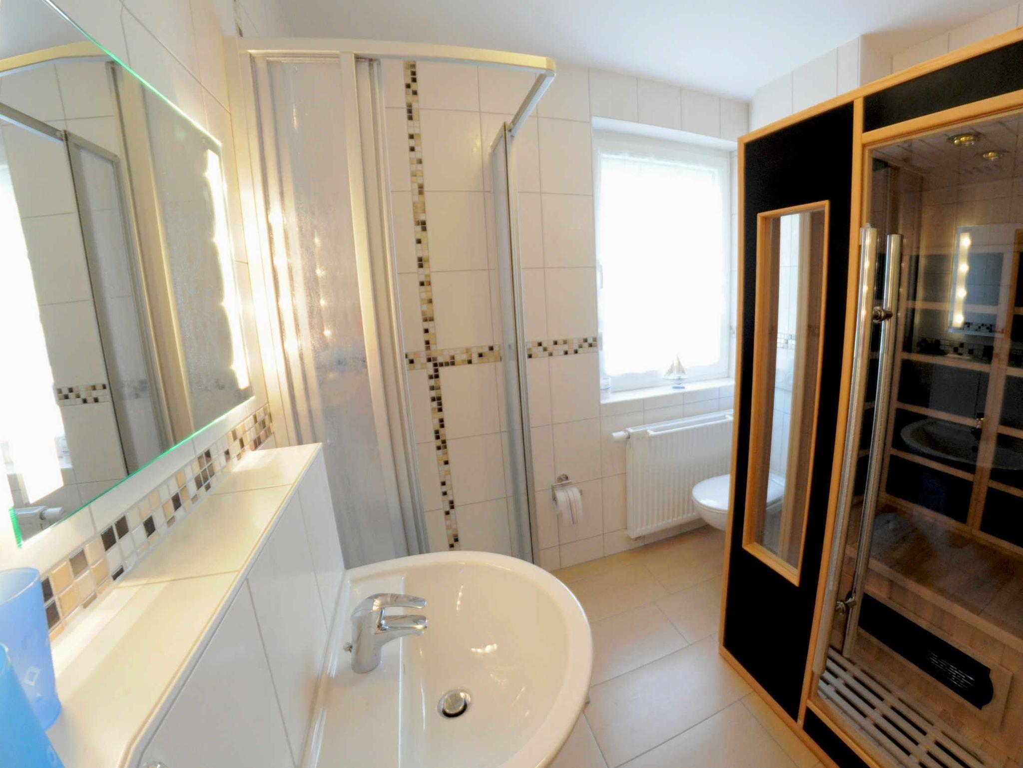 Das Obergeschoss-Appartement verfügt über eine identische Ausstattung wie das Erdgeschoss. Hier befindet sich eine Infrarot-Sauna im Duschbad/WC. Der möbilierte Balkon verfügt über ein Elektrogrill. Eine Babyausstattung bestehend aus Kinderreisebett und Hochstuhl können gern bei Bedarf kostenfrei zur Verfügung gestellt werden.