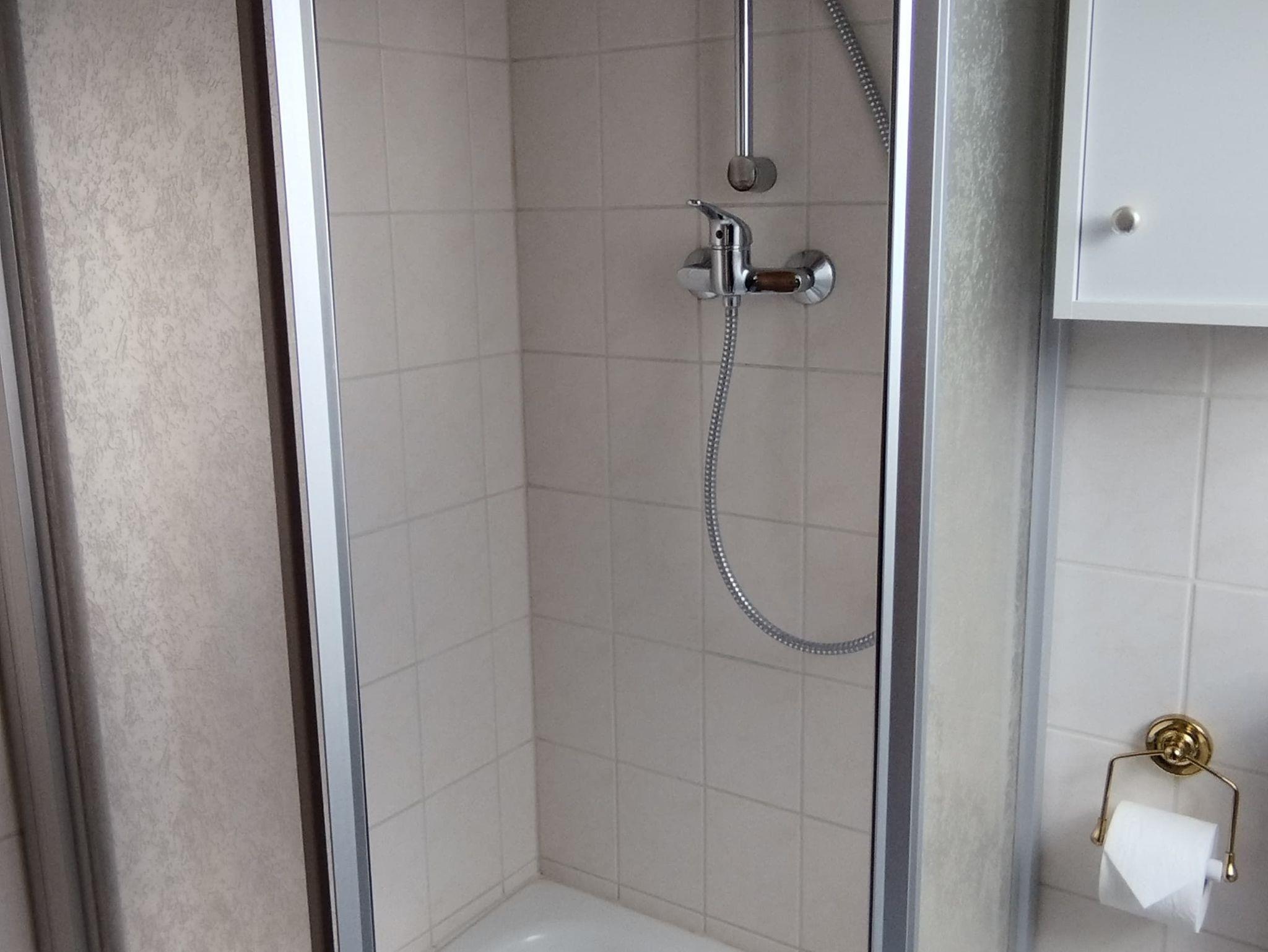 Das Badezimmer ist praktisch mit einer Dusche ausgestattet, Handtücher sind selbstverständlich inklusive.