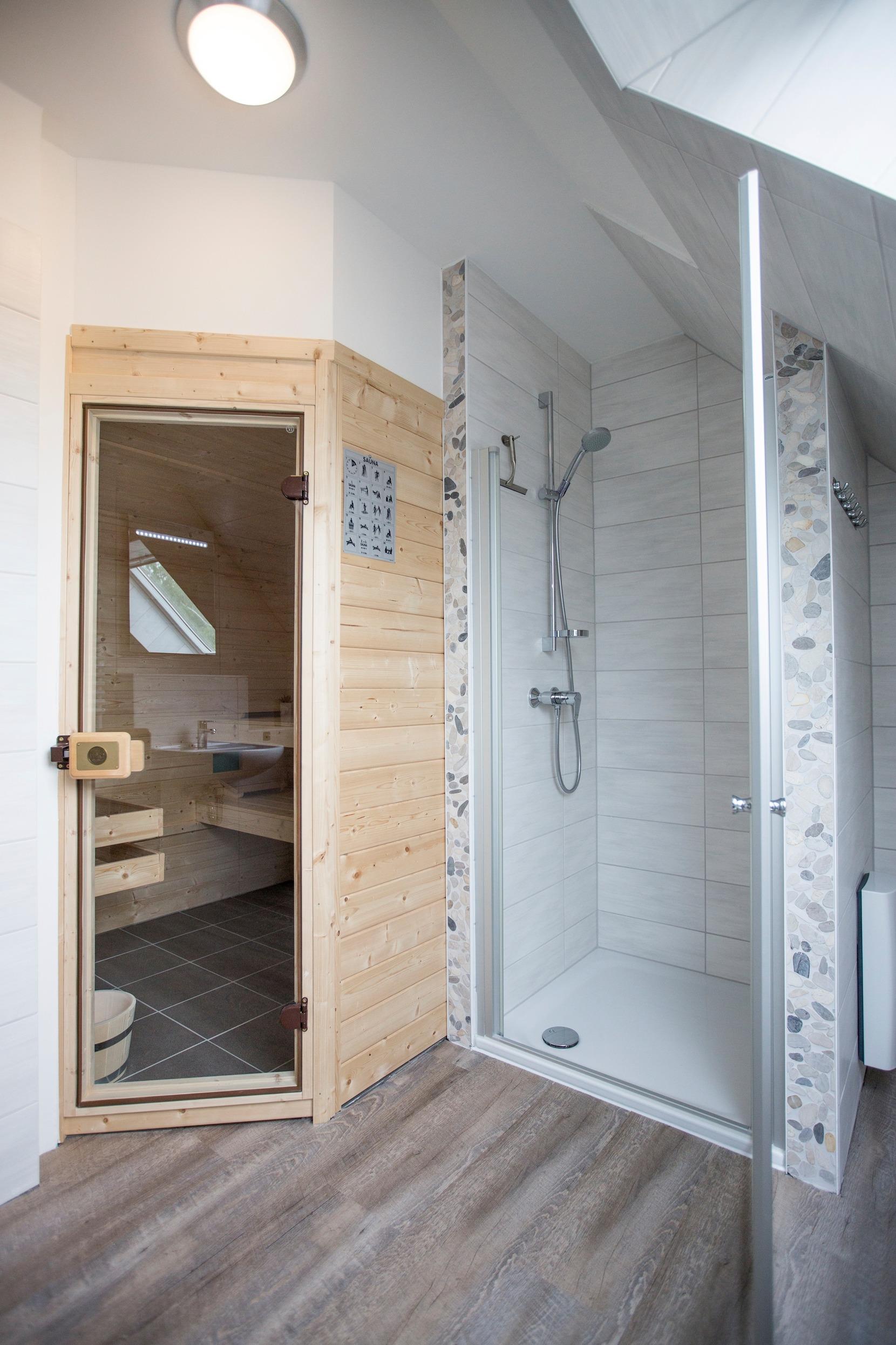 Das Ferienhaus besitzt zwei Ebenen mit ca. 120 m² Wohnfläche und verfügt über 3 getrennte Schlafzimmer mit Boxspring-Doppelbetten. Es gibt 2 Bäder jeweils mit Dusche, WC, Waschbecken. In einem Bad gibt es eine finnische Sauna zum Entspannen.