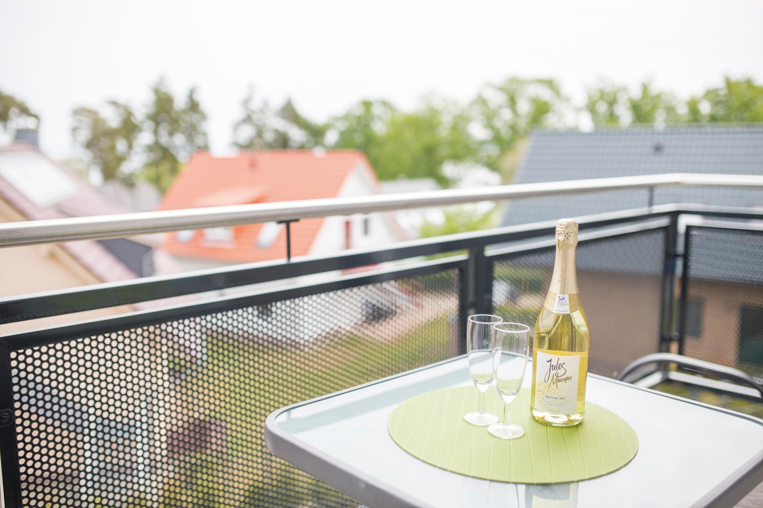 - Balkon und eine mit Gartenmöbeln ausgestattete Terrasse