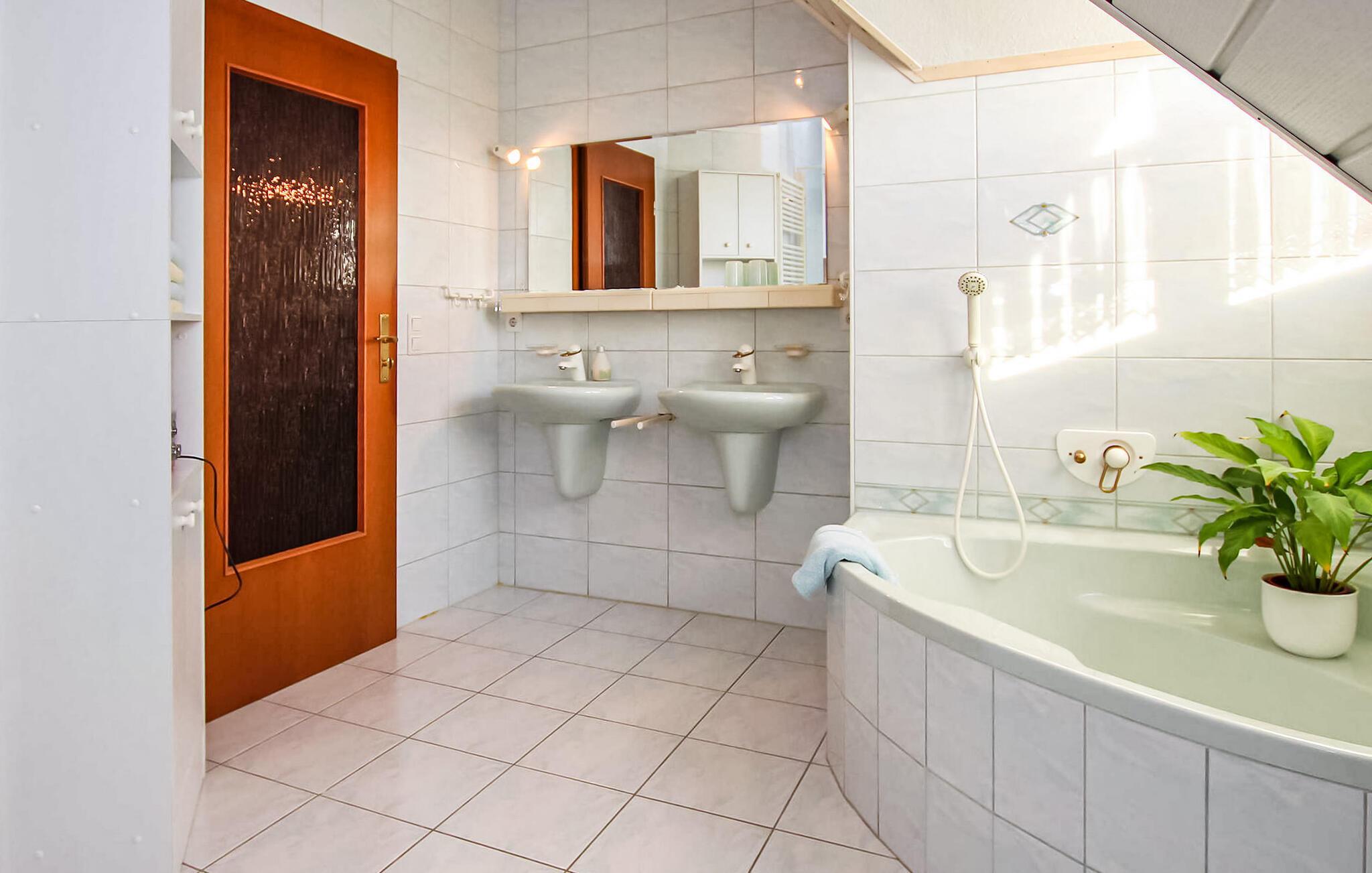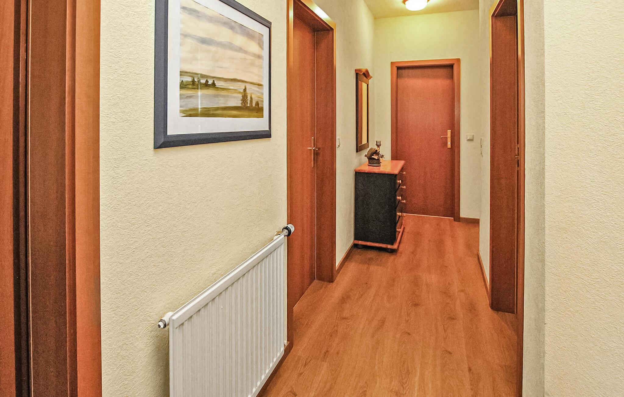 Die ca. 58 qm große, zentral beheizte Nichtraucher-Wohnung verfügt über einen kombinierten Wohn- Schlafraum (Sitzecke, Flachbild-TV, Radio/CD-Player, Doppelbett), einen Schlafraum (ein kleines Einzelbett, Länge 1,90 m, Schreibtisch) eine Küche (E-Kochplatten, Kühlschrank mit Gefriermöglichkeit, Mikrowelle, Esstisch, diverse Küchenkleingeräte), einen Flur und ein geräumiges Bad (Dusche, WC, zwei Waschbecken, Eck-Badewanne, Fön) sowie einen großen, möblierten Balkon. (Zugang vom Wohnraum und der Küche, Rauchen hier erlaubt). Die Treppe zur Wohnung führt über den Eingangsbereich des Eigentümers. Den Gästen stehen kostenloses W-LAN, Fahrrad-Unterstellmöglichkeiten (auf Anfrage auch ein abschließbarer Raum), Parkplatz, ein Kinderbett und ein Hochstuhl zur Verfügung.