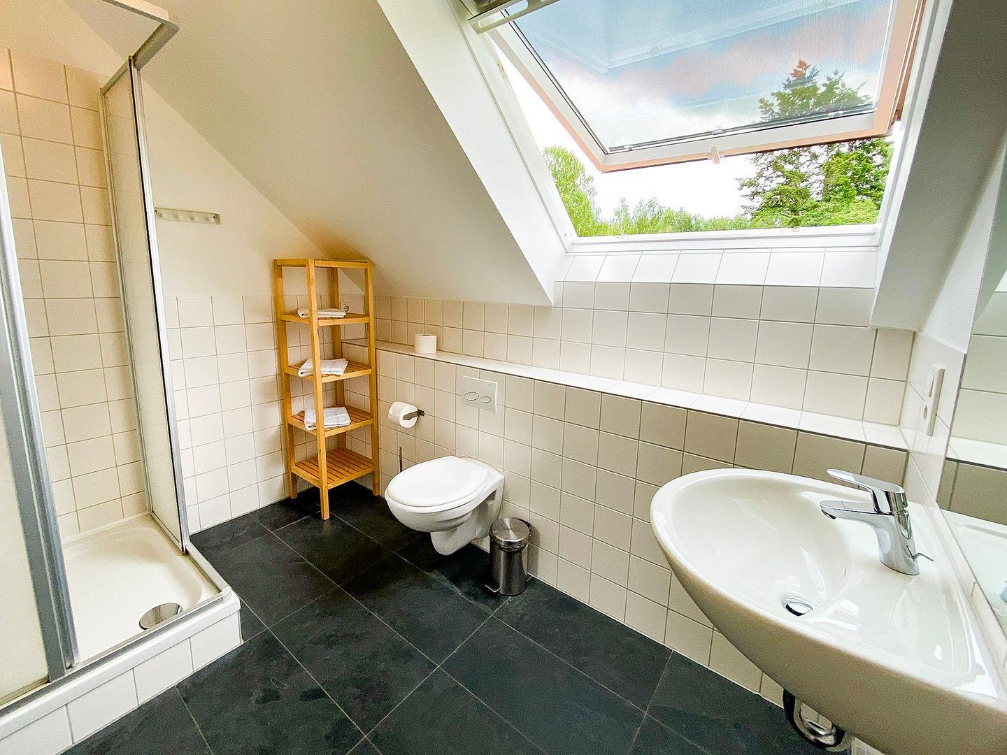 Im Obergeschoss befinden sich drei Schlafzimmer, die jeweils mit komfortablen Hotelbetten ausgestattet sind. Ein weiteres Highlight ist das Duschbad mit angrenzender Sauna, das zu einem privaten SPA-Erlebnis einlädt.