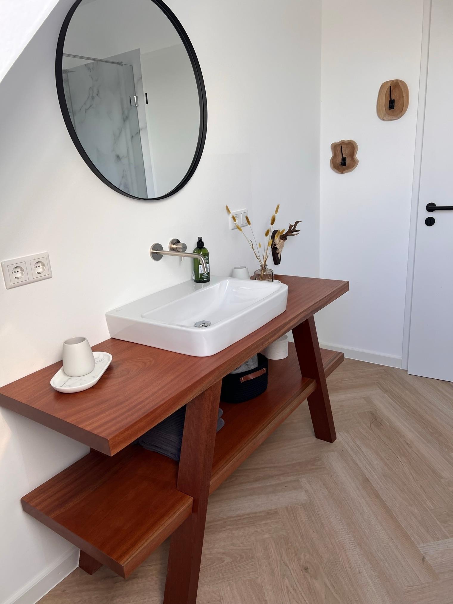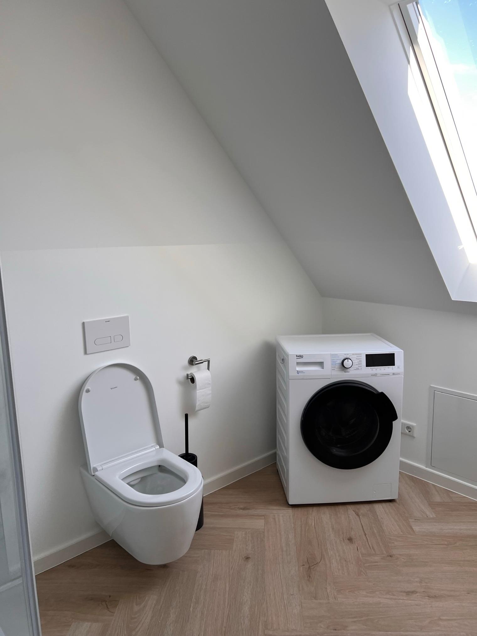 Das modern ausgestattete Badezimmer mit Regendusche, großem Waschtisch, Fön, Waschtrockner und Handtüchern lassen keine Wünsche offen.