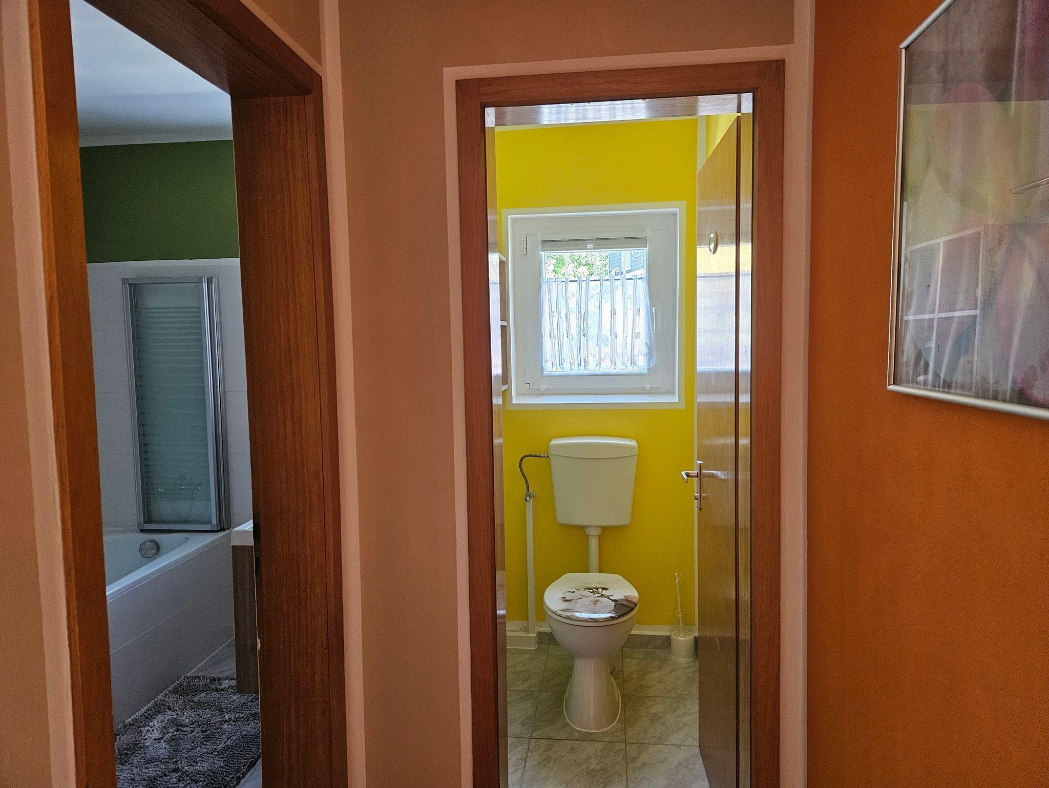 Es gibt ein separates Esszimmer. In der Küche ist alles vorhanden was man braucht. Bad und WC sind getrennt. Das Bad hat eine Badewanne mit Dusche und einen Waschtrockner. Bettwäsche, Handtücher, Seife, Fön, Bügeleisen... gehören zur Grundausstattung.