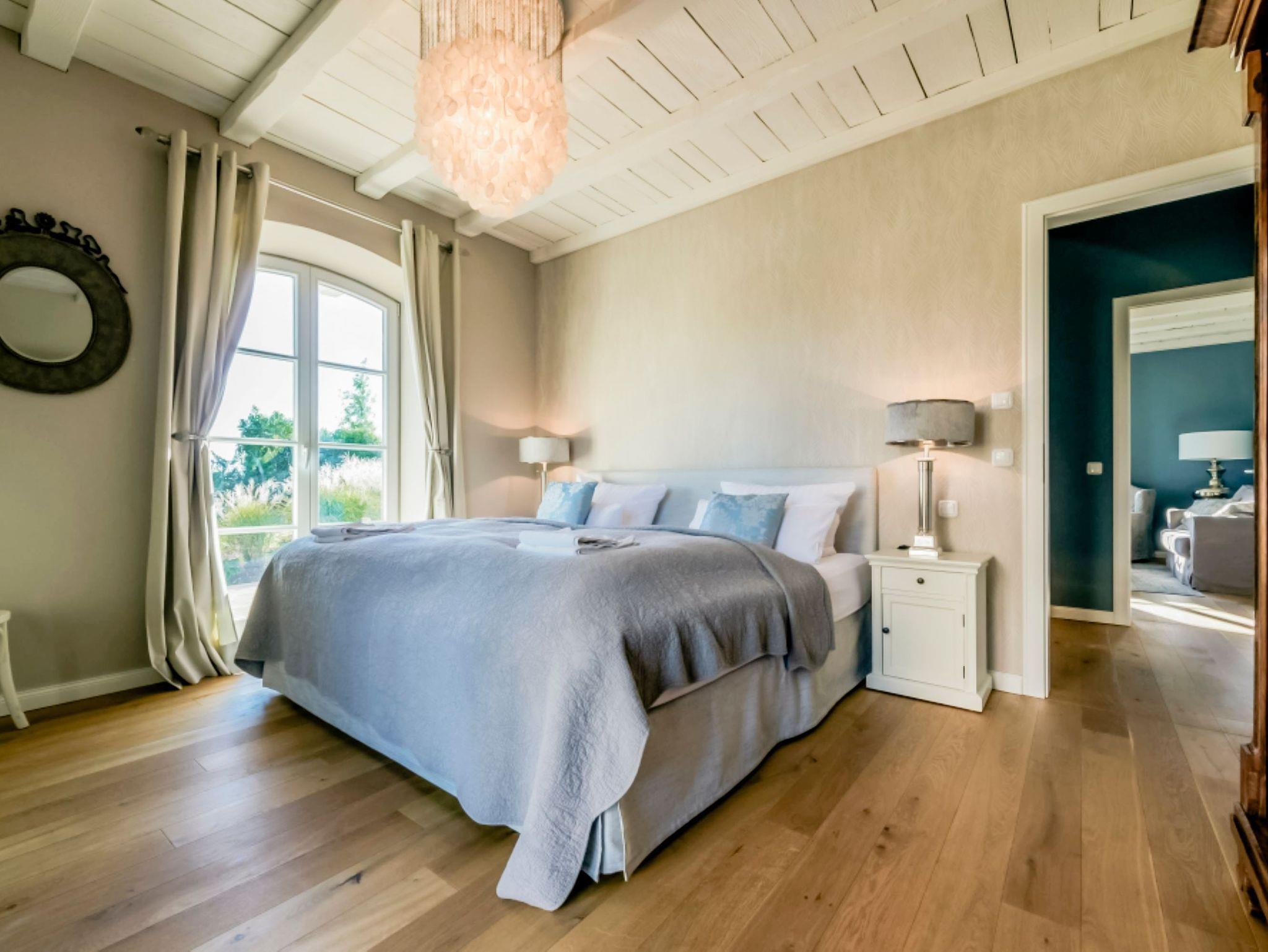 Erleben Sie einen unvergesslichen Aufenthalt in diesem stilvollen 2-Personen-Appartement im Erdgeschoss des herrschaftlichen weißen Reetdachhauses auf der weitläufigen Anlage des Lerchenhofs in Reestow. Mit seiner geschmackvollen Möblierung im gehobenen Landhausstil und einer hochwertigen Ausstattung ist dieses Domizil der ideale Ort für einen romantischen Urlaub oder eine Auszeit vom Alltag.