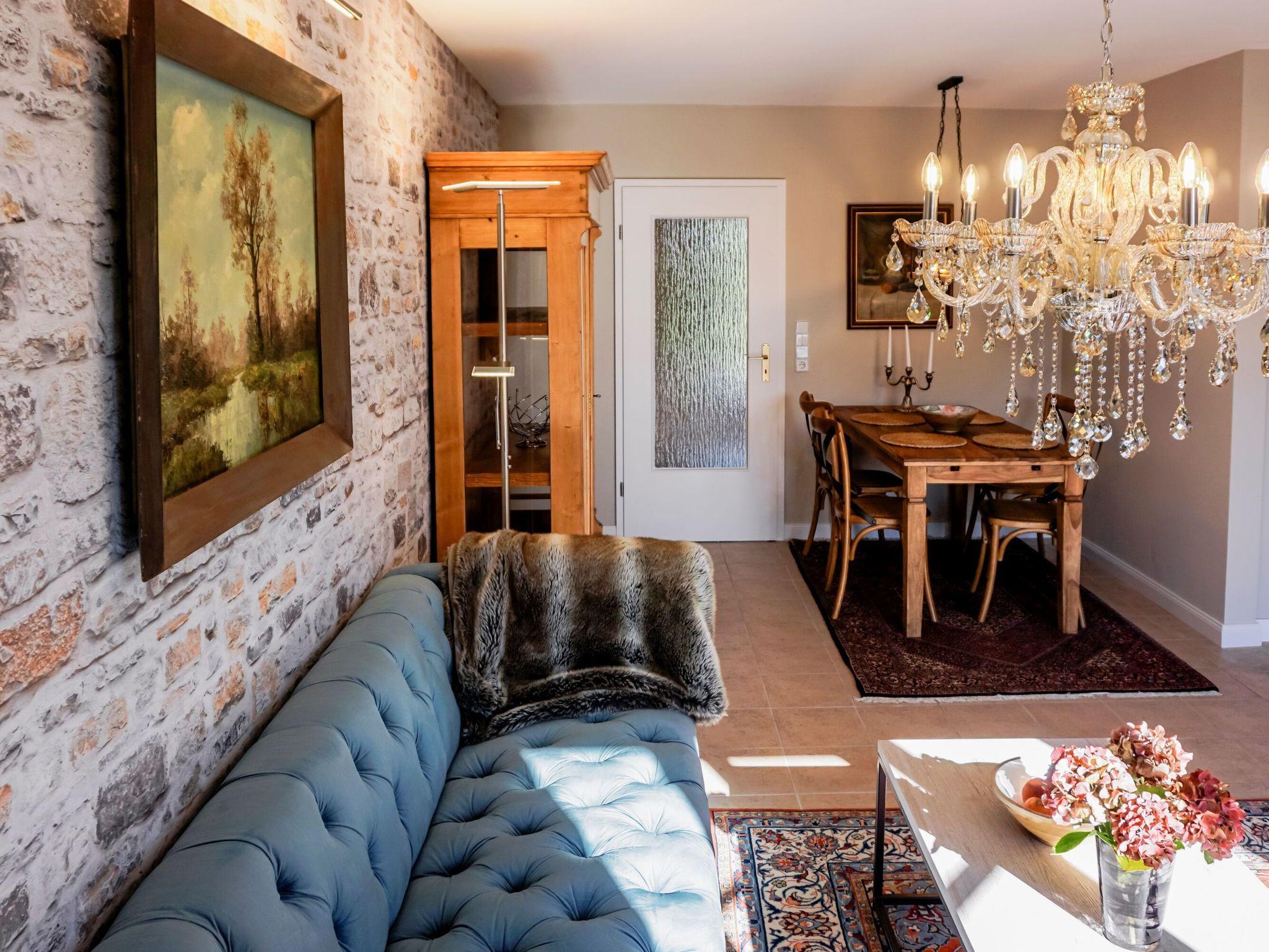 Die hochwertige Möblierung im gehobenen Landhausstil verleiht dem Appartement eine einladende, warme Atmosphäre.