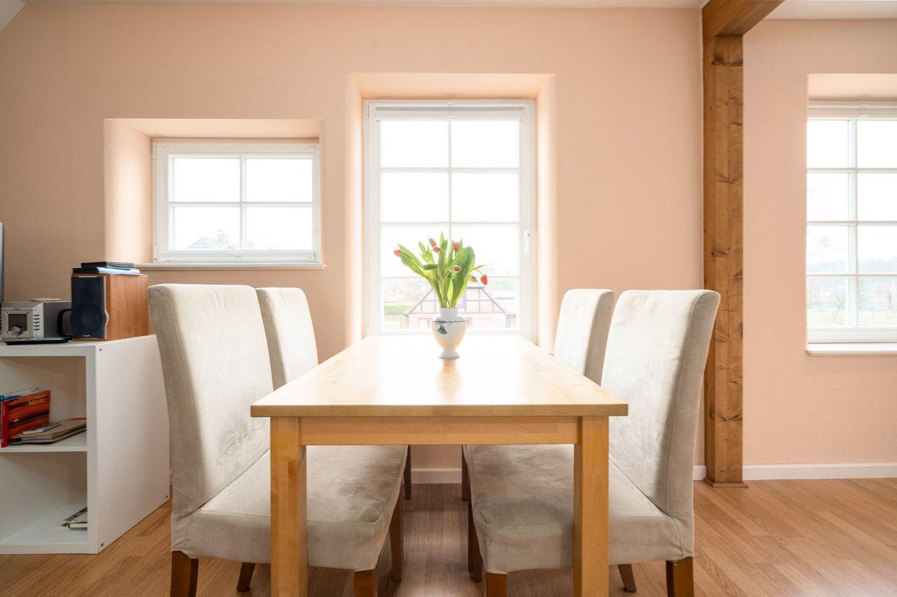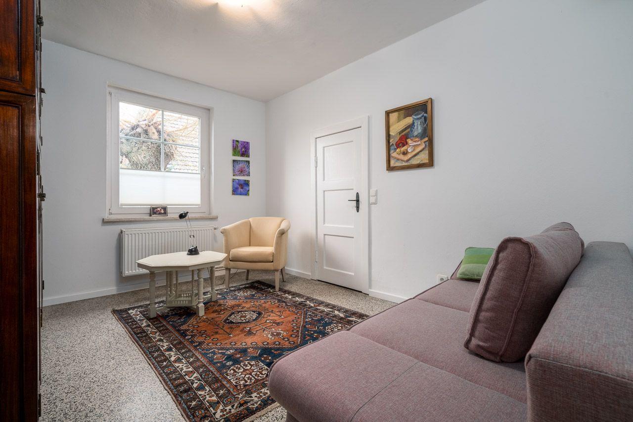 In dem aufwändig sanierten und geschmackvoll gestalteten Haus aus den 1930-Jahren bieten wir Ihnen eine ur-gemütliche Urlaubsunterkunft im 1. Obergeschoss an, wo Sie sich sehr wohlfühlen werden. Annehmlichkeiten wie Zentralheizung, moderne Küchenausstattung mit Waschmaschine, bodengleiche Dusche, Fliegengitter, Infrarot-Wärmekabine, W-LAN sowie die stilvolle Ausstattung entsprechen Ihrer Erwartung auf gediegenen Komfort. Das App ist nur über Treppen erreichbar - eigener Eingang mit Flur und 2. SZ mit Schlafsofa im EG. Im Vorgarten des 6000m² Grundstücks befinden sich Sitzplatz mit Grill/Feuerstelle und eine Parkbucht.