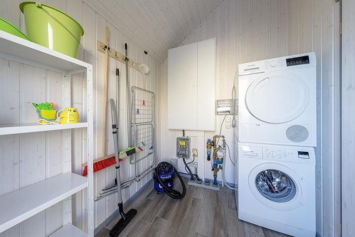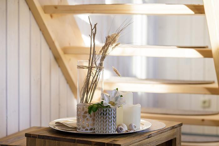 Das Ferienhaus im skandinavischen Stil bietet Platz für bis zu 6 Personen auf 2 Etagen mit 2 Schlafzimmern und offener Schlafgalerie, Wohn-/Essbereich, Einbauküche, Badezimmer mit Sauna und Whirlpool, Pkw-Stellplatz und Terrasse.