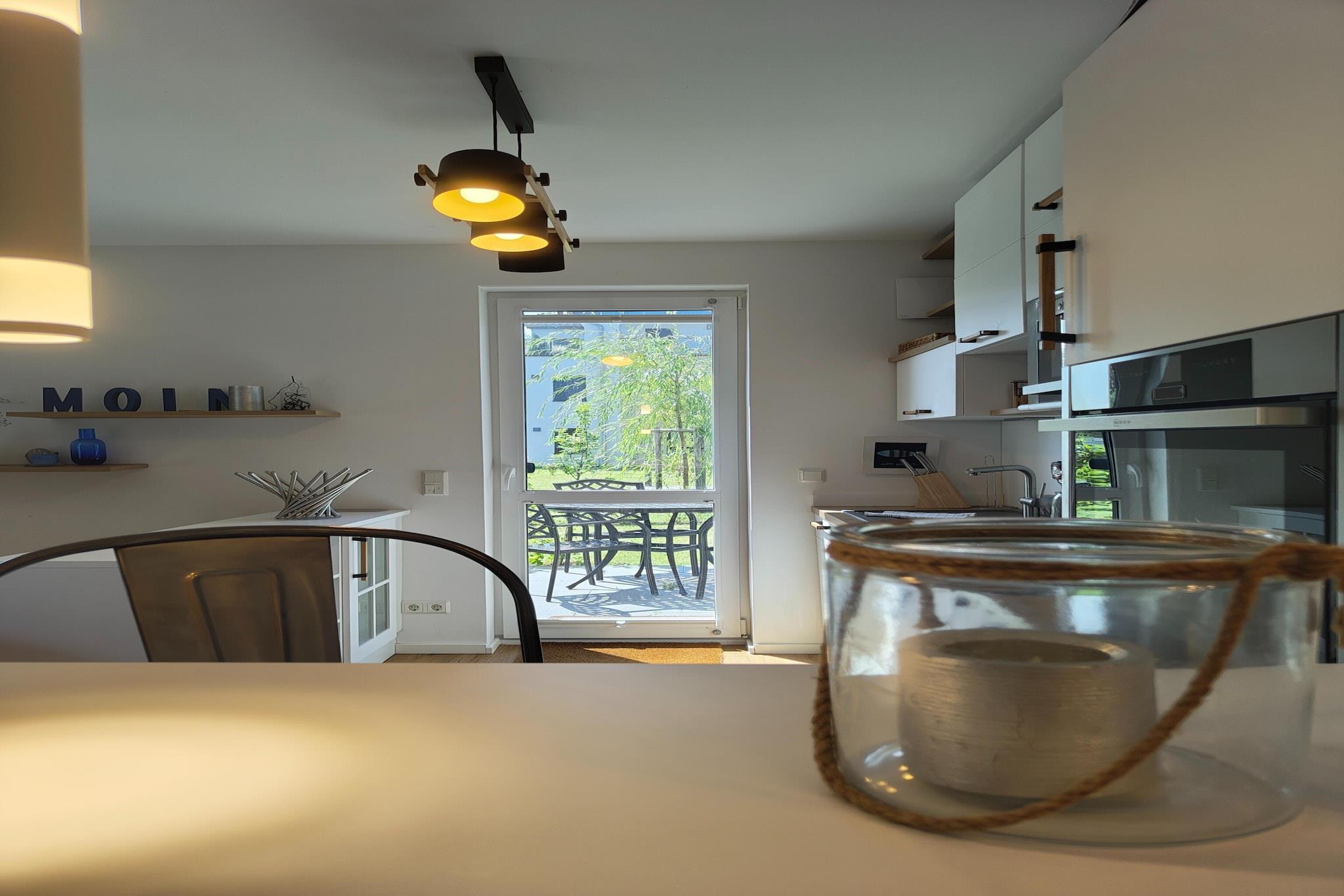 Parterre: (offene Küche(Kochplatte(4 Kochplatten, Ceranfeld), Wasserkocher, Toaster, Kaffeemaschine, Backofen, Mikrowelle, Spülmaschine, Kühl-/Gefrierkombination), Wohn/Esszimmer(Schlafcouch 1 Pers., TV(Satellit), Esstisch, Kaminofen, Sitzecke), Schlafzimmer(Doppelbett), Badezimmer(Dusche, Waschbecken, Toilette, Föhn), Internet) Heizung(elektrisch), Terrasse, Gartenmöbel, Grill(Holzkohle), Parkplatz, Babybett (kostenpflichtig), Handtücher/Bettwäsche (inklusive)