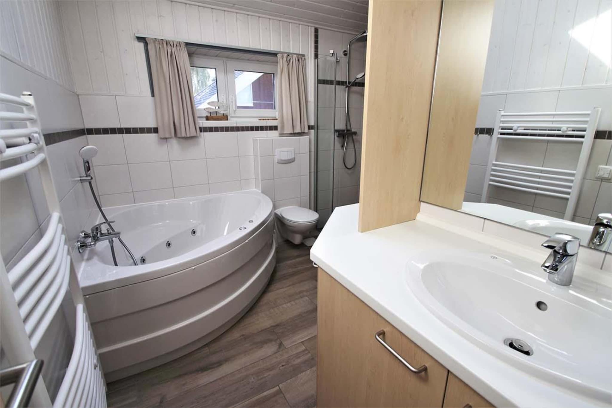 Parterre: (Küche(Kochplatte(4 Kochplatten, Ceranfeld), Wasserkocher, Toaster, Kaffeemaschine, Backofen, Mikrowelle, Spülmaschine, Kühlschrank(+ Gefrierfach)), Wohn/Esszimmer(TV(Satellit), Esstisch, Kaminofen, Sitzecke), Schlafzimmer(Einzelbett, Einzelbett), Schlafzimmer(Doppelbett), Badezimmer(Whirlwanne, Dusche, Sauna(alleinige Nutzung), Waschbecken, Toilette, Föhn), Internet) Heizung(elektrisch), Terrasse, Garten, Gartenmöbel, Grill(Holzkohle), Parkplatz, Babybett (kostenpflichtig), Handtücher/Bettwäsche (extra Gebühr)