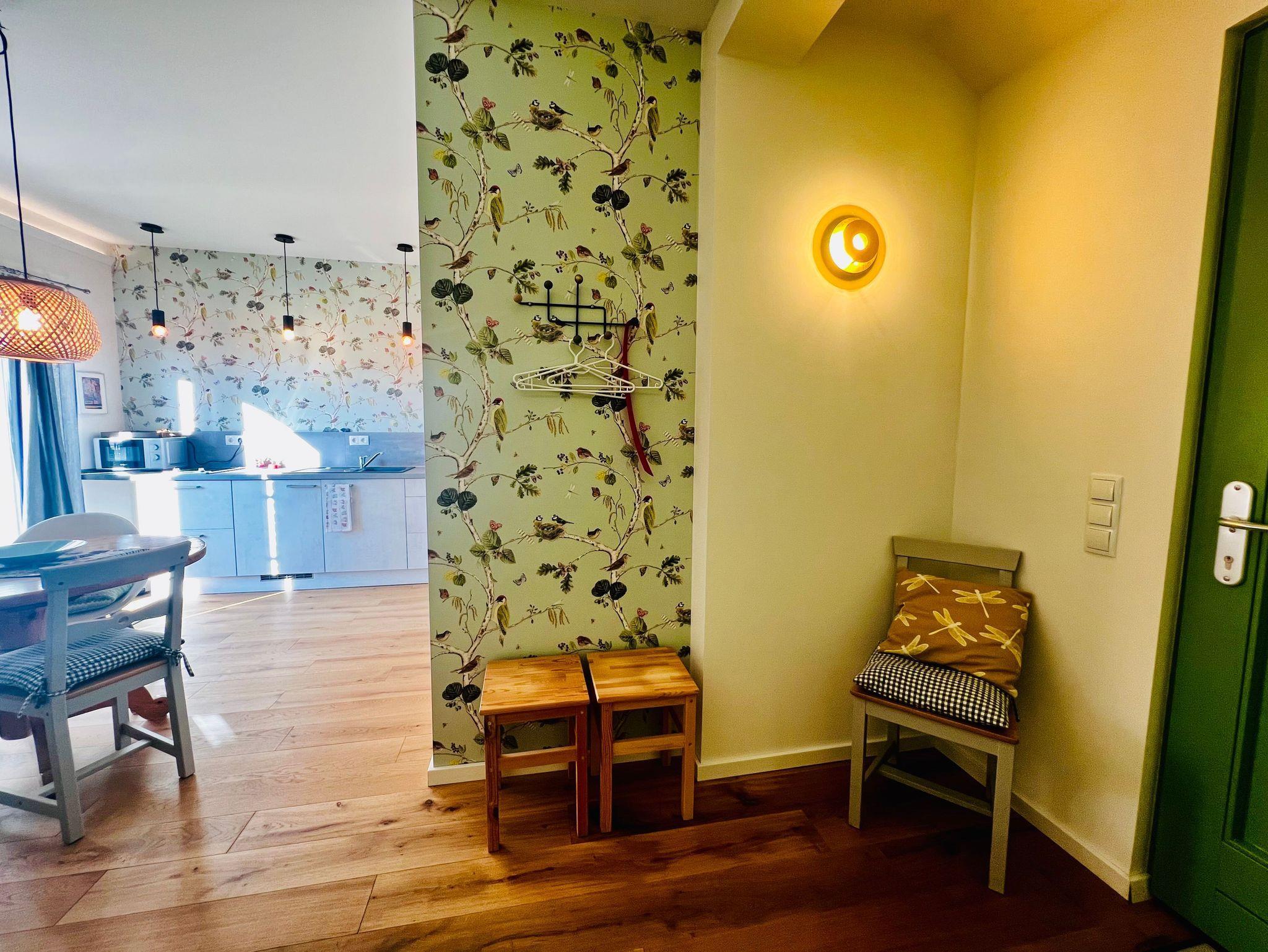 Das Apartment besticht durch seine helle, freundliche Gestaltung, einen offenen Wohn- und Schlafbereich sowie eine praktische Küchenzeile. Liebevolle Details, natürliche Materialien und eine moderne Ausstattung schaffen den idealen Rückzugsort nach erlebnisreichen Urlaubstagen.