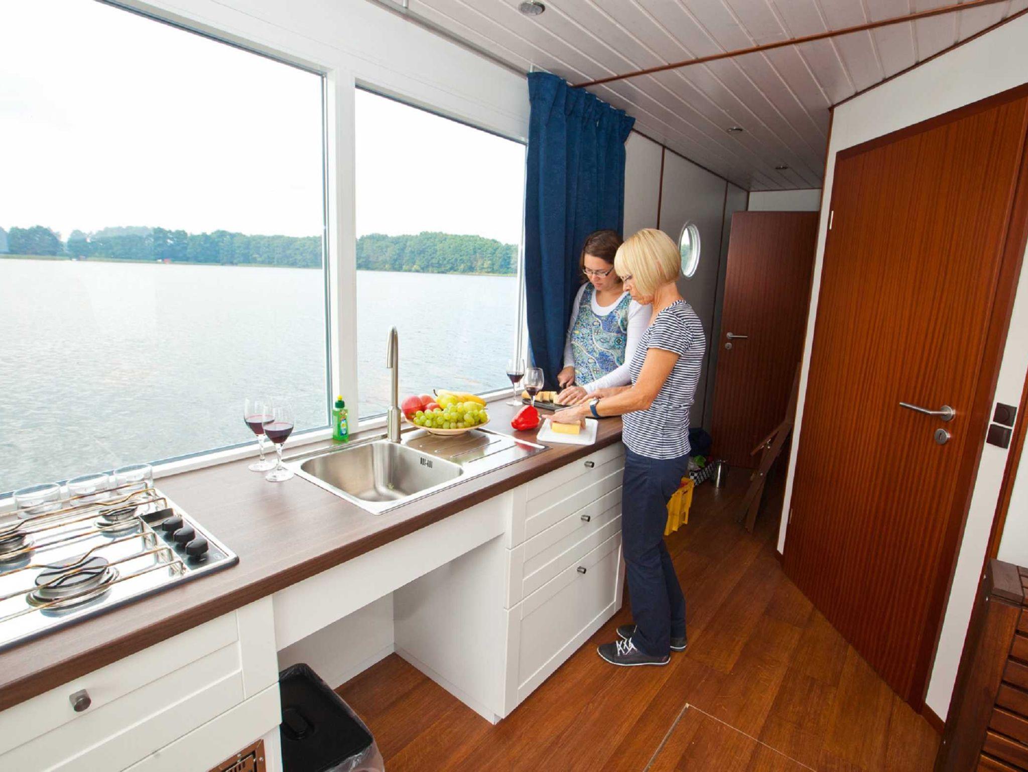 Das große Febomobil ist perfekt für Familien oder Menschen mit eingeschränkter Mobilität. Das Ferienhaus auf dem Wasser bietet Ihnen alle Annehmlichkeiten von großem Schlafzimmer bis zur voll ausgestatteten Küche.