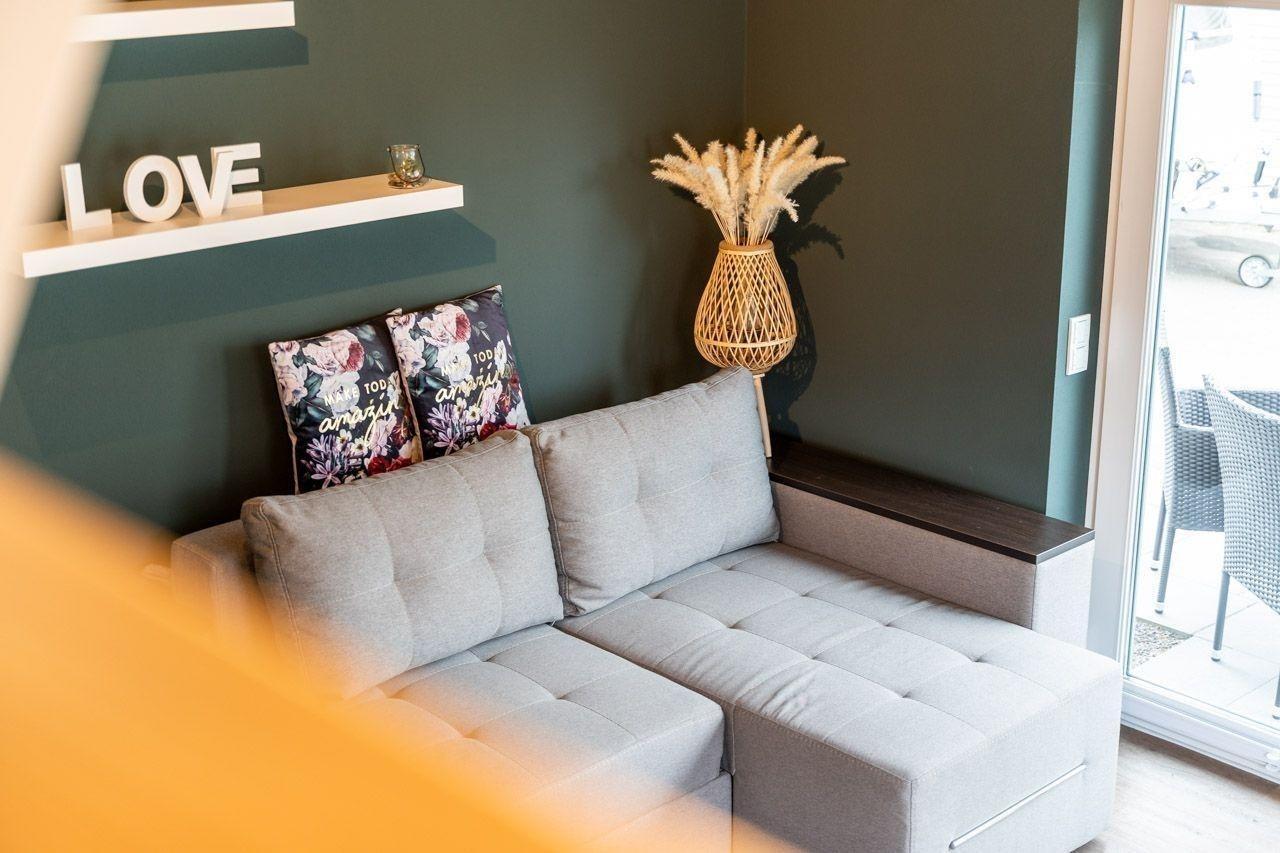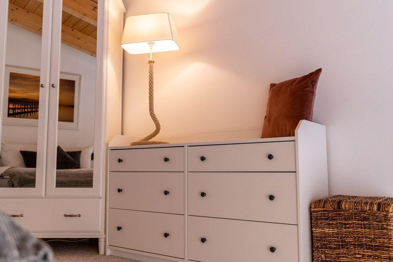 Die Ferienwohnung bietet eine komfortable und allergikerfreundliche Unterkunft, ideal für einen erholsamen Aufenthalt. Sie verfügt über ein einladendes Schlafzimmer mit einem Doppelbett sowie ein Wohnschlafzimmer, das mit einer Schlafcouch ausgestattet ist. Die offene Küche ist mit modernen Geräten wie einem Geschirrspüler, Elektro-/Gasherd, Backofen, Kühlschrank, Kaffeemaschine, Toaster und einer Gefriermöglichkeit ausgestattet. Auch ein Esstisch ist vorhanden, um gemeinsam zu speisen. Das Badezimmer mit Fenster bietet ein Duschbad und ist mit einem Haartrockner ausgestattet. Für Unterhaltung sorgt ein TV, während im gesamten Apartment WLAN verfügbar ist. Praktische Annehmlichkeiten wie eine Waschmaschine, ein Wäschetrockner, ein Staubsauger und ein Wäscheständer stehen ebenfalls zur Verfügung. Die Wohnung verfügt über Fußbodenheizung für zusätzlichen Komfort und einen Parkplatz direkt vor der Tür. Brettspiele und ein Sonnenschirm runden das Angebot ab.