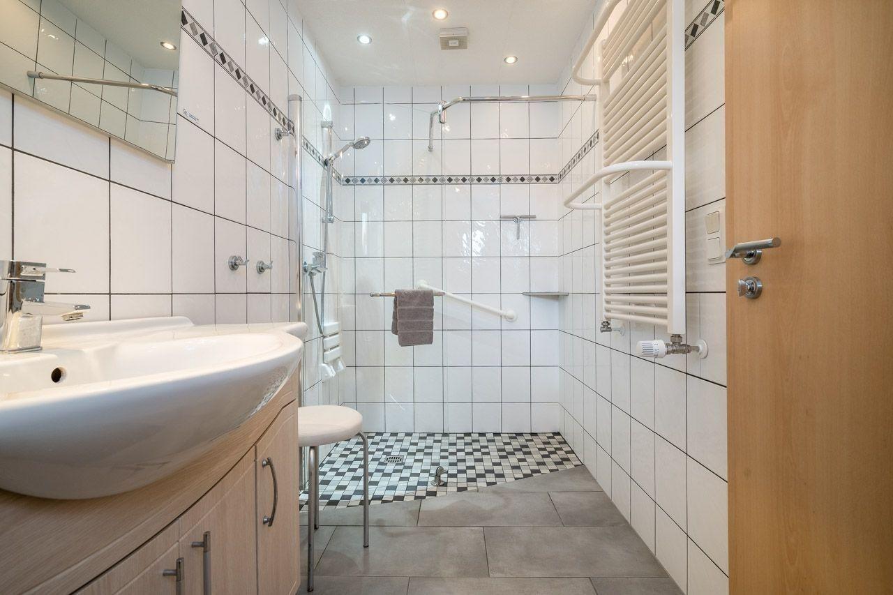 Die Ferienwohnung bietet eine komfortable und moderne Ausstattung, die sowohl für Senioren als auch für Allergiker geeignet ist. Sie verfügt über zwei großzügige Schlafzimmer, eines mit einem Doppelbett und das andere mit einem Einzelbett sowie einer ausziehbaren Schlafcouch für Kinder. Das Badezimmer mit Fenster ist mit einer bodengleichen Dusche ausgestattet und bietet zusätzlichen Komfort.