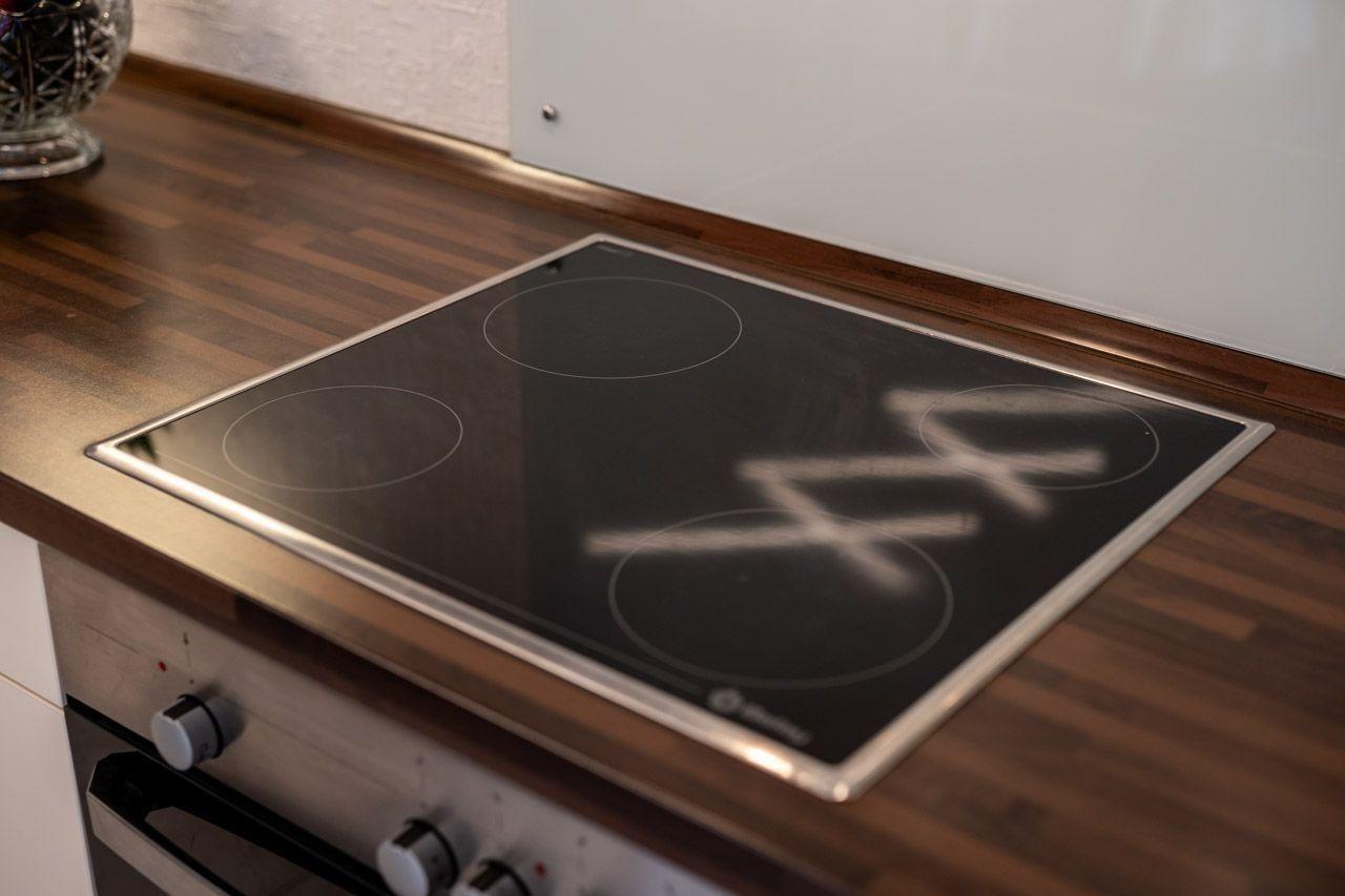 Die offene Küche ist ideal für gesellige Kochabende und verfügt über einen Geschirrspüler, Elektro- und Gasherd, Backofen, Mikrowelle, Kühlschrank, Kaffeemaschine, Wasserkocher und Toaster. Ein Esstisch lädt zu gemeinsamen Mahlzeiten ein.