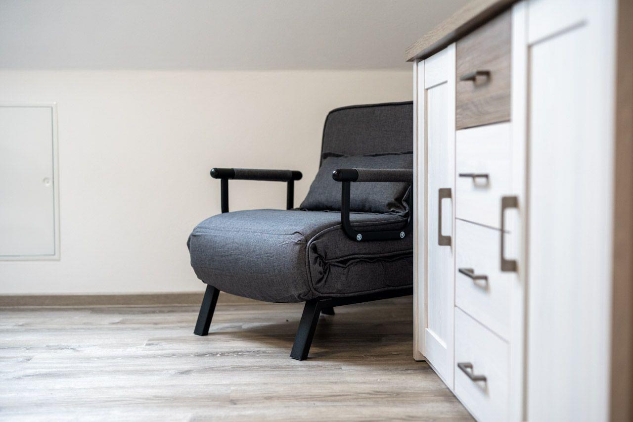 Ferienappartement mit moderner Einrichtung und Platz für 2-4 Pers. Offener Wohn- Essbereich, Küche, Kaminofen, Waschmaschine., 1 OG, großer Garten und ruhige Lage, Haustiere sind willkommen