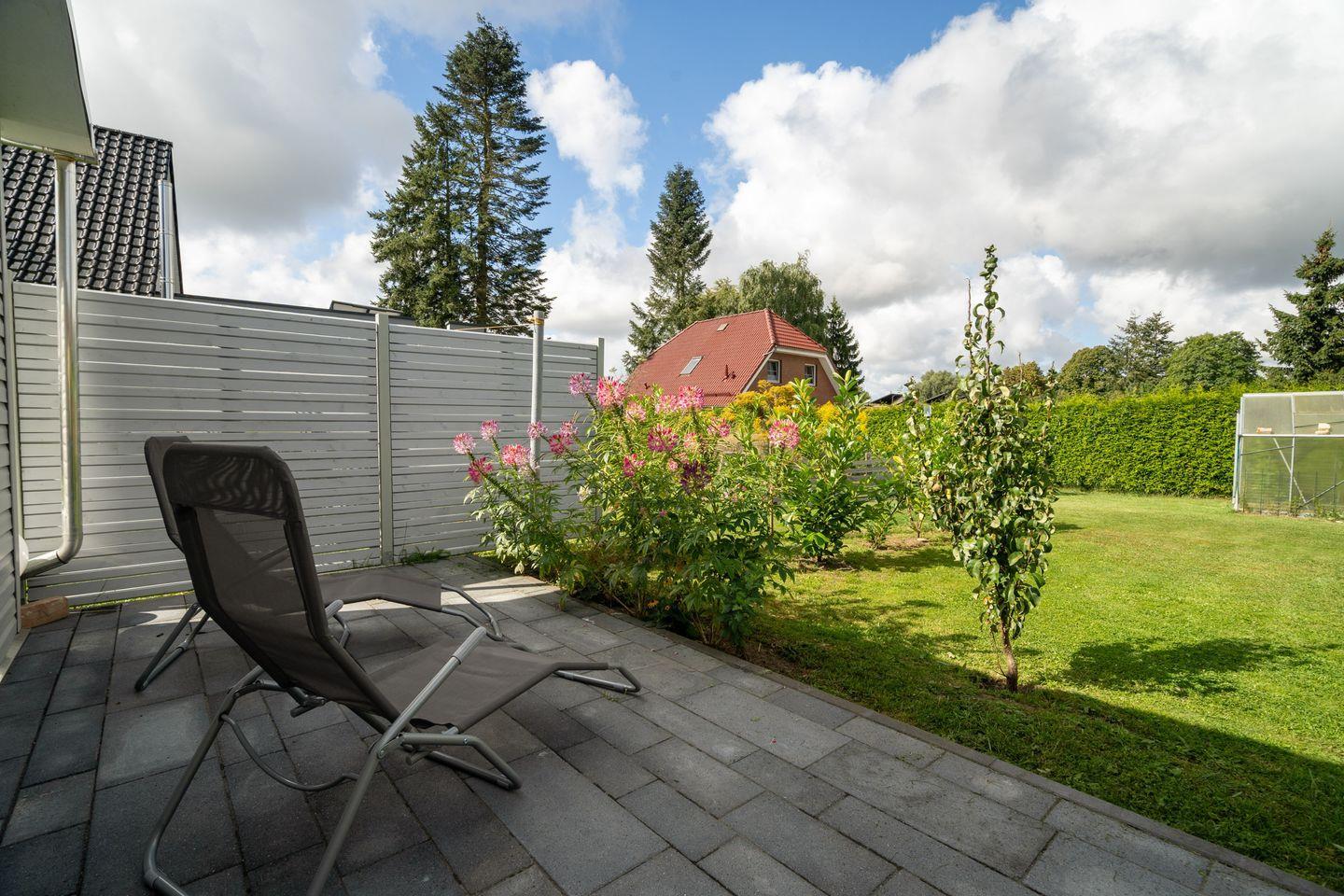 Ein besonderes Highlight ist die überdachte Terrasse mit Gartenmöbeln, Sonnenliegen, Sonnenschirm und einer großzügigen Liegewiese. Hier können Sie entspannte Stunden im Freien genießen, auf dem abgeschlossenen Grundstück ungestört verweilen und Ihr Lieblingsgericht auf dem Kohlegrill zubereiten. Zur Unterkunft gehört ein gepflegter Garten, der sowohl Raum für Erholung als auch für kindgerechte Aktivitäten bietet.
