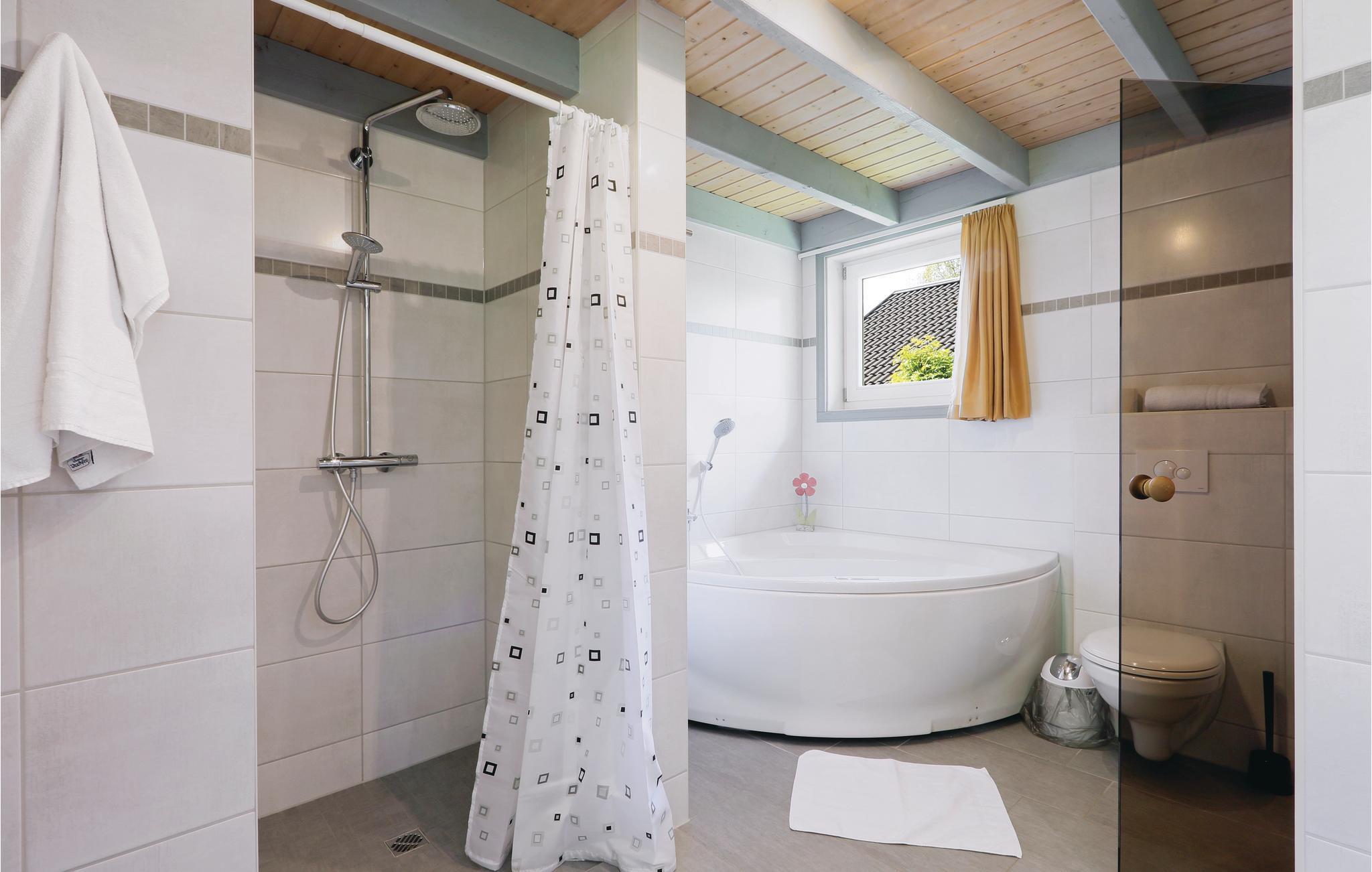 Badezimmer (nr. 1) - WC. Warmes und kaltes Wasser. Dusche und Badewanne