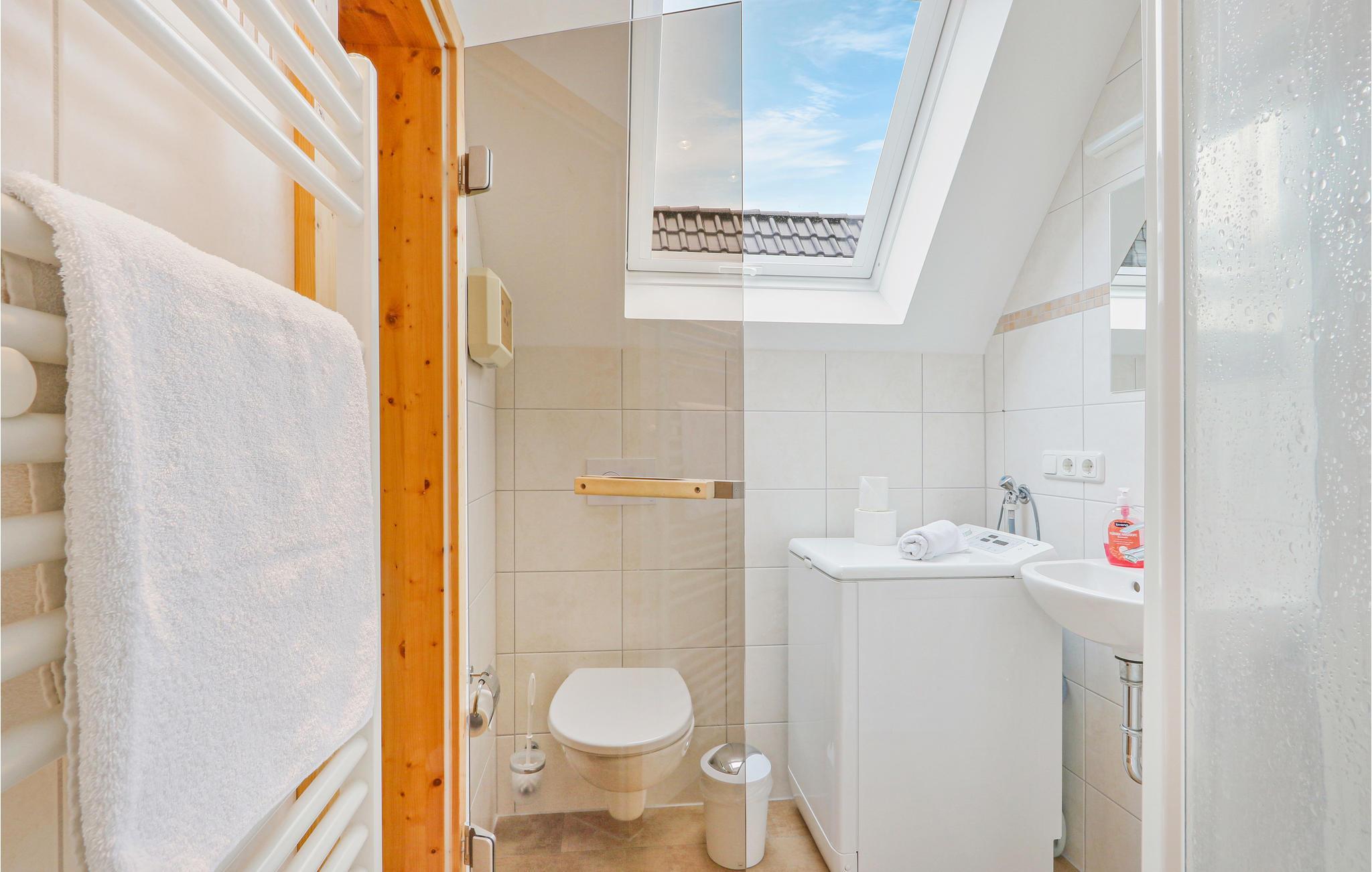 Das großzügige Duschbad verfügt über eine Whirlwanne, in der Sie herrlich entspannen können. Ein Haarföhn steht hier für Sie zur Verfügung.