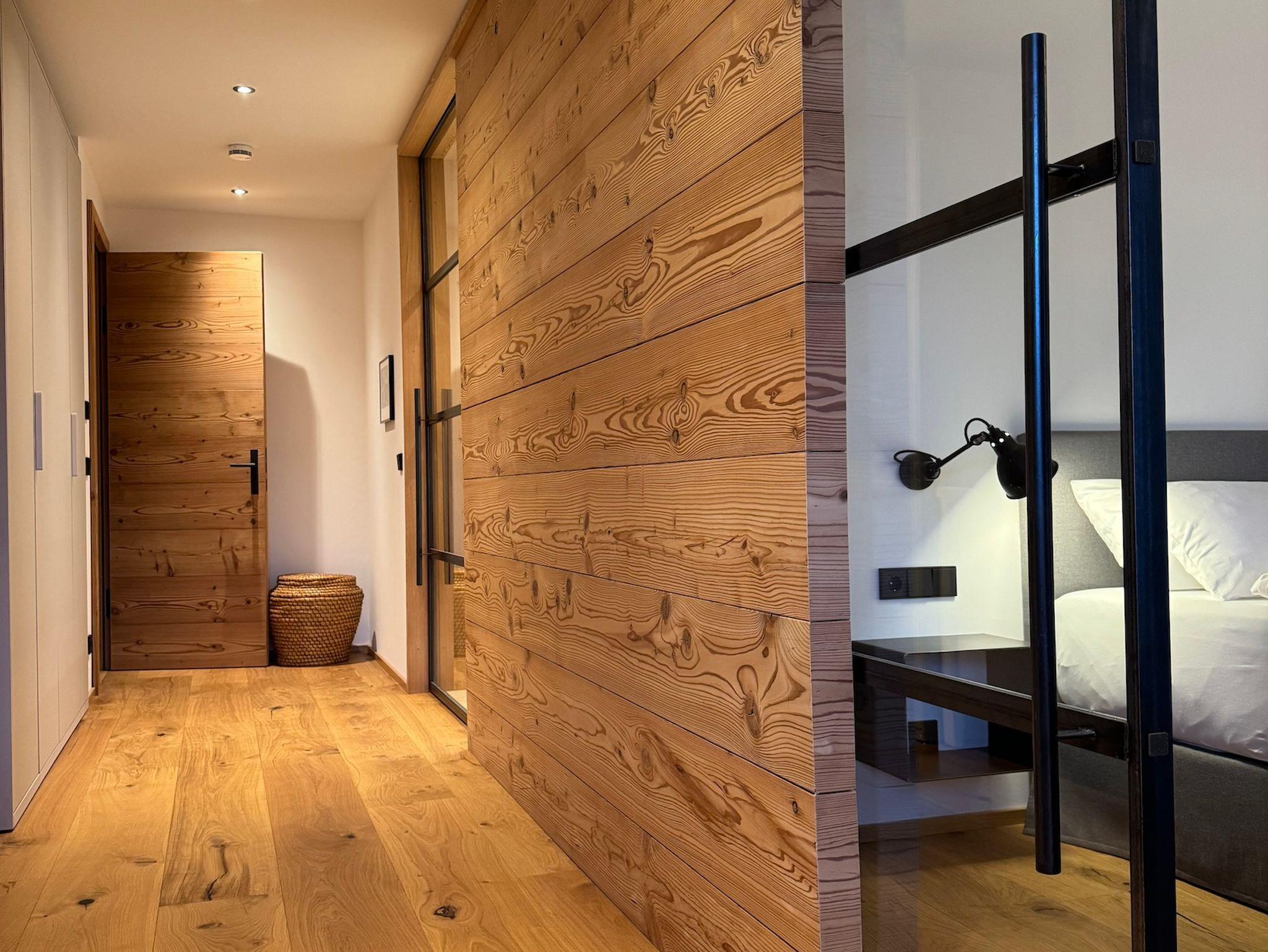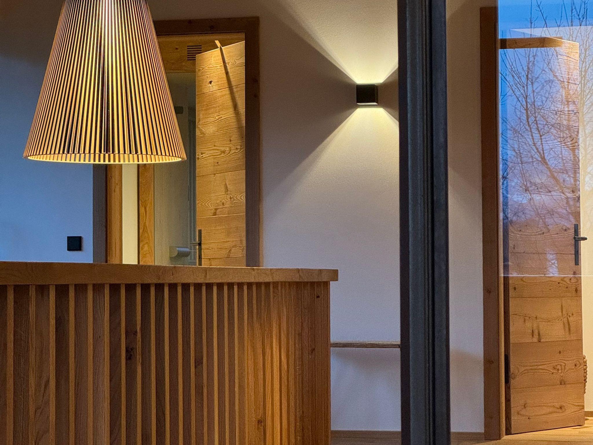 Das Unterberg21 interpretiert den alpenländischen Architekturstil neu - es vereint traditionelle Materialien und Handwerkskunst mit modernen Designelementen. Gebürstetes Lärchenholz bestimmt innen wie außen den Stil des Hauses, kombiniert mit handgeschmiedeten Einrichtungselementen, antiken Möbelstücken und einer luxuriösen Ausstattung. Im Herzen der bayerischen Alpen bietet das Unterberg21 einen perfekten Erholungs- und Wohlfühlort für Liebhaber von Natur und Design gleichermaßen. Das besondere Raumkonzept in Kombination mit der großzügigen Terrasse und dem umlaufenden Balkon bieten wunderbare Ausblicke in das umliegende Bergpanorama.