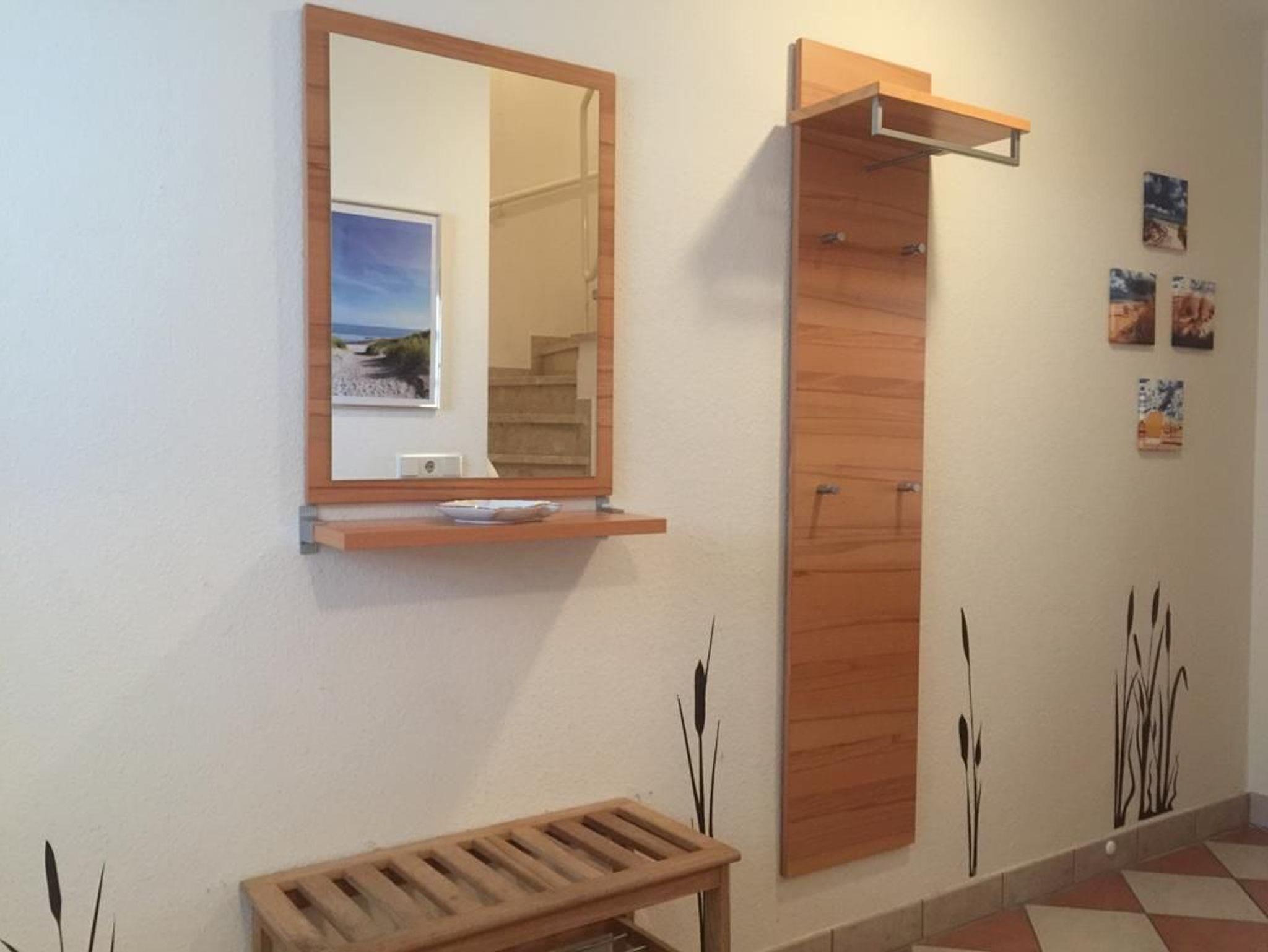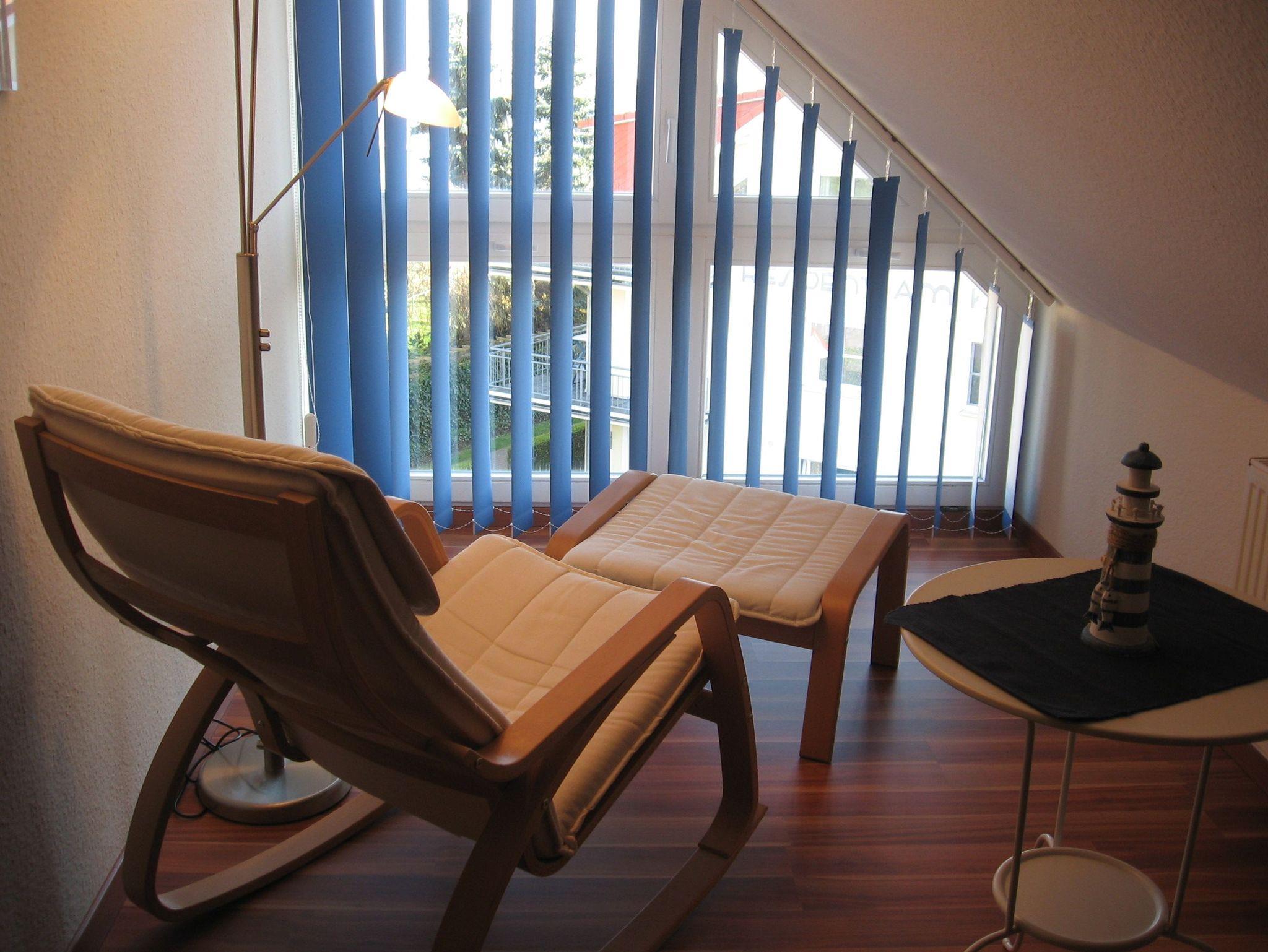 Nichtraucher-Wohnung, Südbalkon mit Haffblick. Moderne Küche mit Backofen, Ceranfeld, Spülmaschine, Mikrowelle, Kühlschrank mit Gefrierfach, Wasserkocher, Kaffeemaschine, Toaster, Mixer. SAT-TV, Flachbildschirm, DVD-Spieler mit USB-Anschluss, CD-Spieler, Radio, WLAN-Netz, Spielesammlung,Tauschbücherei. Im 1. Schlafzimmer Doppelbett, Kleiderschrank, Kommode, Kleiderdiener, Verdunkelungslamellen, gemütlicher Liegesessel mit Tisch und verstellbarer Leselampe. Im 2. Schlafzimmer 2 sep. Betten, Kommode, Maltisch mit 2 Stühlen, Velux-Verdunkelungsrollo, eigener Kleiderschrank. Für Kinder: Babybett, Hochstuhl, Bettgitter, Maltisch, Tritthocker im Bad, Spiele und Duplo/Legosteine. Im Haus: Solarium, Waschmaschine, Trockner (gegen Gebühr), Bäcker mit Café. Tiefgarage mit eigenem Stellplatz.