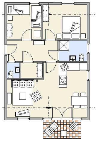 Helle und stilvoll eingerichtete 3-Zimmer-Wohnung im Obergeschoss überzeugt durch ihre offene und gemütliche Gestaltung. Das Wohnzimmer ist mit einem Schlafsofa ausgestattet und lädt zum Entspannen ein. Die vollständig ausgestattete Küche öffnet sich zum Essbereich und verbindet sich harmonisch mit dem Wohnbereich samt Sitzecke und TV.