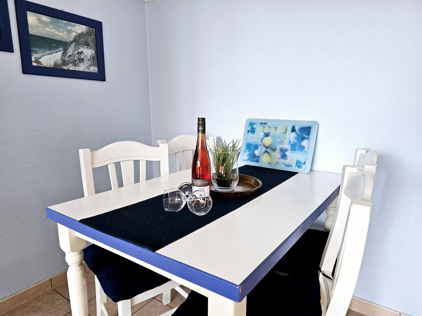 Diese liebevoll eingerichtete 2-Zimmer-Ferienwohnung begeistert mit einer geschmackvollen Einrichtung im maritimen Stil und einem durchdachten Wohnkonzept. Der helle Wohnbereich öffnet sich zum Balkon, von dem aus Sie einen herrlichen Blick auf das Salzhaff genießen können – ein idealer Ort, um den Morgenkaffee mit Sonnenlicht und Meeresluft zu verbinden oder den Abend beim Sonnenuntergang ausklingen zu lassen.