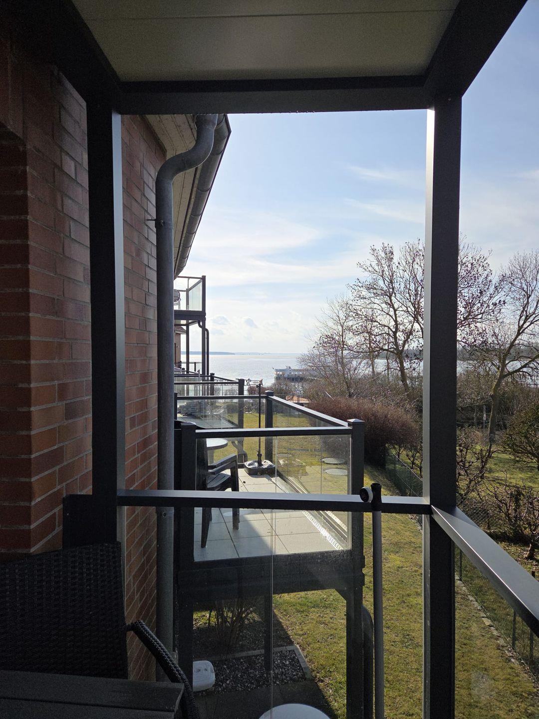 Highlight der Wohnung ist der Balkon mit direktem Zugang vom Wohnraum – ausgestattet mit zwei Stühlen und einem Tisch, perfekt für das Frühstück in der Morgensonne oder ein Glas Wein am Abend mit einem atemberaubenden Blick aufs Wasser.