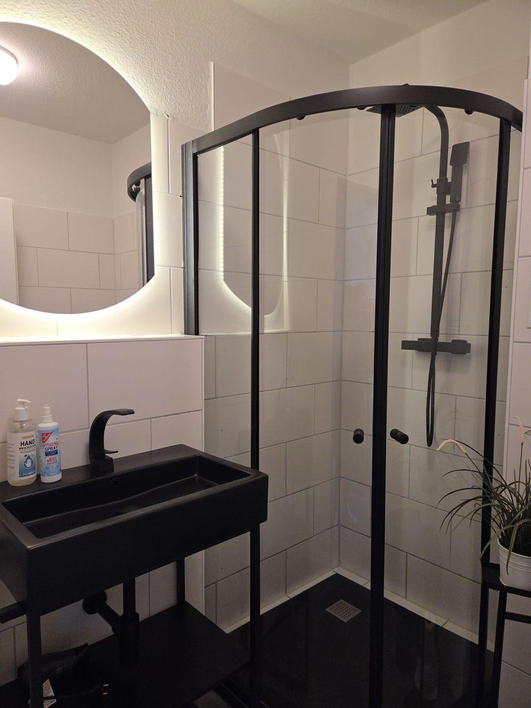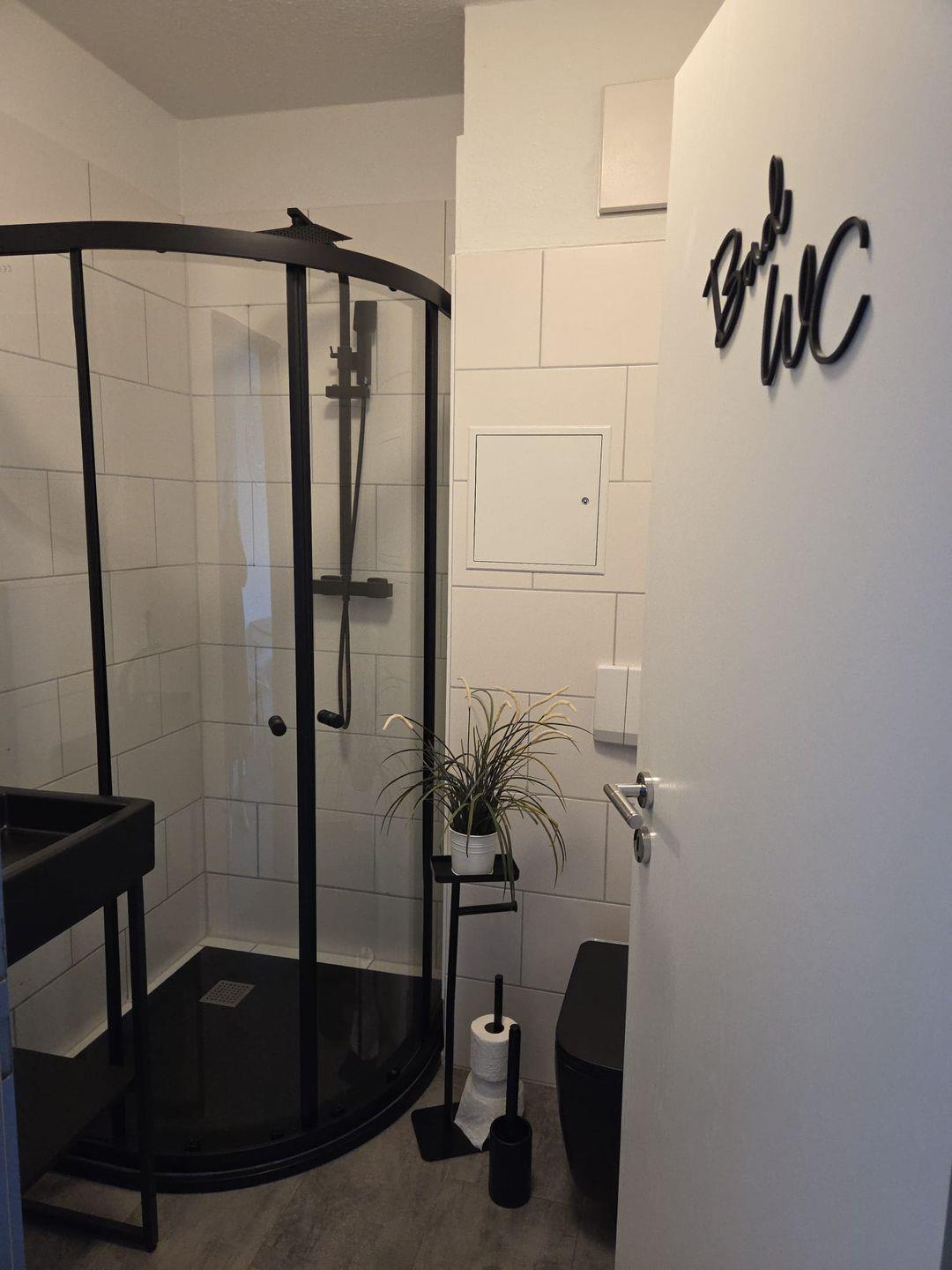 Schon beim Betreten der Wohnung werden Sie sich wohlfühlen: Der kleine Flur heißt Sie mit einem großen Schrank willkommen, der reichlich Platz für Ihr Gepäck bietet. Direkt vom Flur aus erreichen Sie das innenliegende Duschbad – ausgestattet mit Dusche, Waschbecken und WC.
