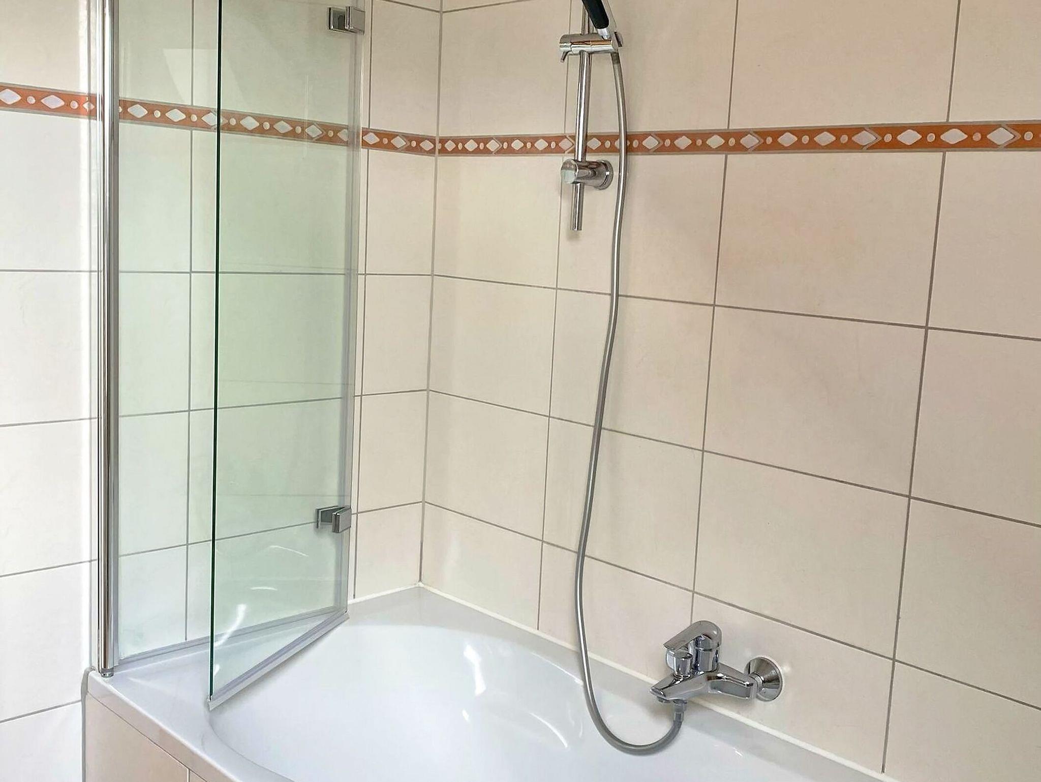 - Badezimmer: Badewanne mit Duschfunktion, WC, Spiegel, Wäscheständer, Fön
