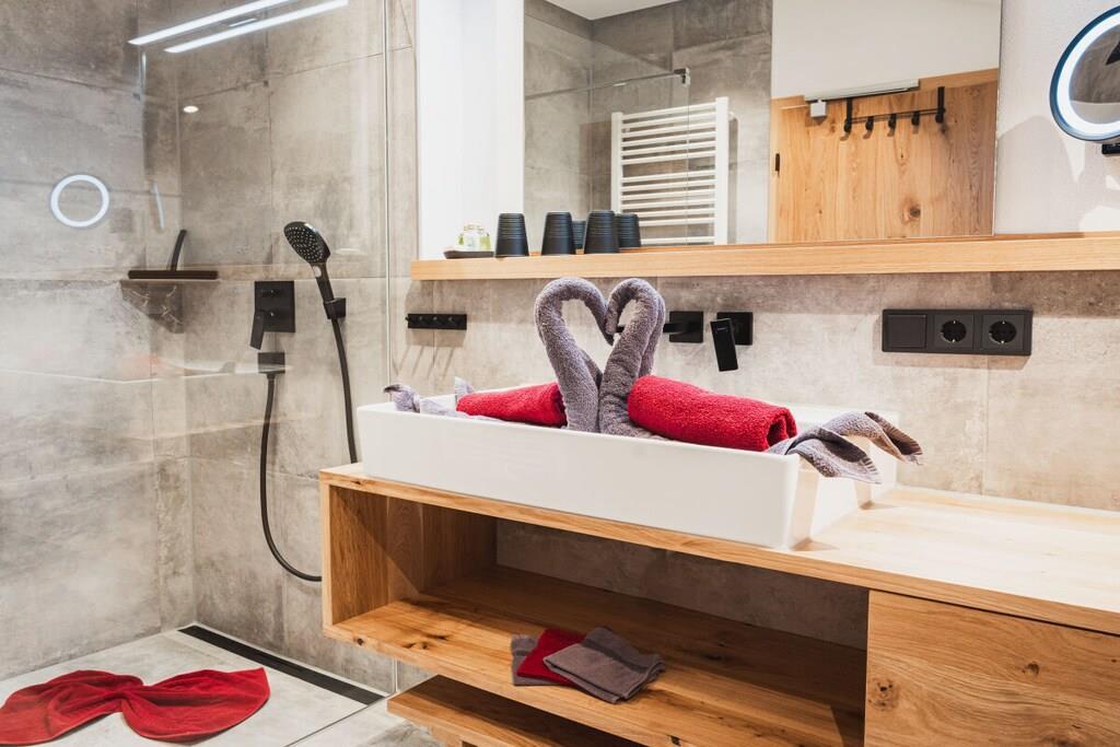 Wir vermietene eine Ferienwohnung mit komplett ausgestatteter Wohnküche (Kühlschrank mit Gefrierfach, Backofen, Cerankochfeld, Geschirrspülmaschine, Kaffeevollautomat, Toaster, Eierkoch, Mixer, Küchenwaage, Backpapier, Salz, Pfeffer, Spülmaschinentabs). Sie verfügt über eine gemütliche Sitzgelegenheit mit TV-Flachbildschirm und Zugang auf einen großen Balkon. Unsere Edelweiss Betten verfügen über unterschiedliche Härten an Matratzen, sowie verstellbare Lattenroste, sowie jeweils einen Safe. Ebenfalls befindet sich in den Schlafzimmern TV-Sat. Unsere Bäder sind mit Kosmetikspiegel, Haarföhn, Toilettenpapier und eine Kinderscheml ausgestattet.