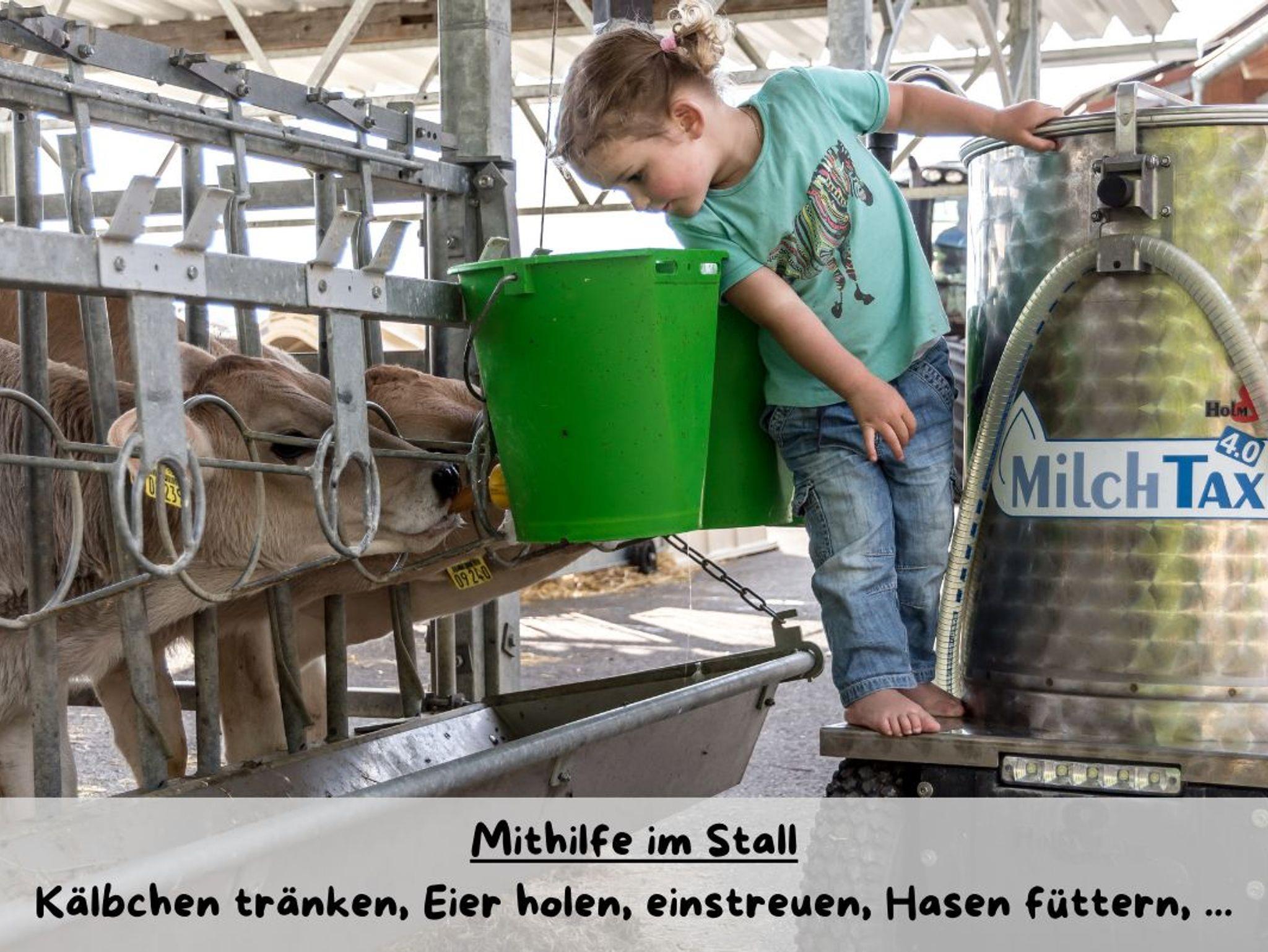 Kühe streicheln, Kälber füttern oder Hasen und Katzen verwöhnen – auf unserem Hof sind kleine und große Tierfreunde willkommen!