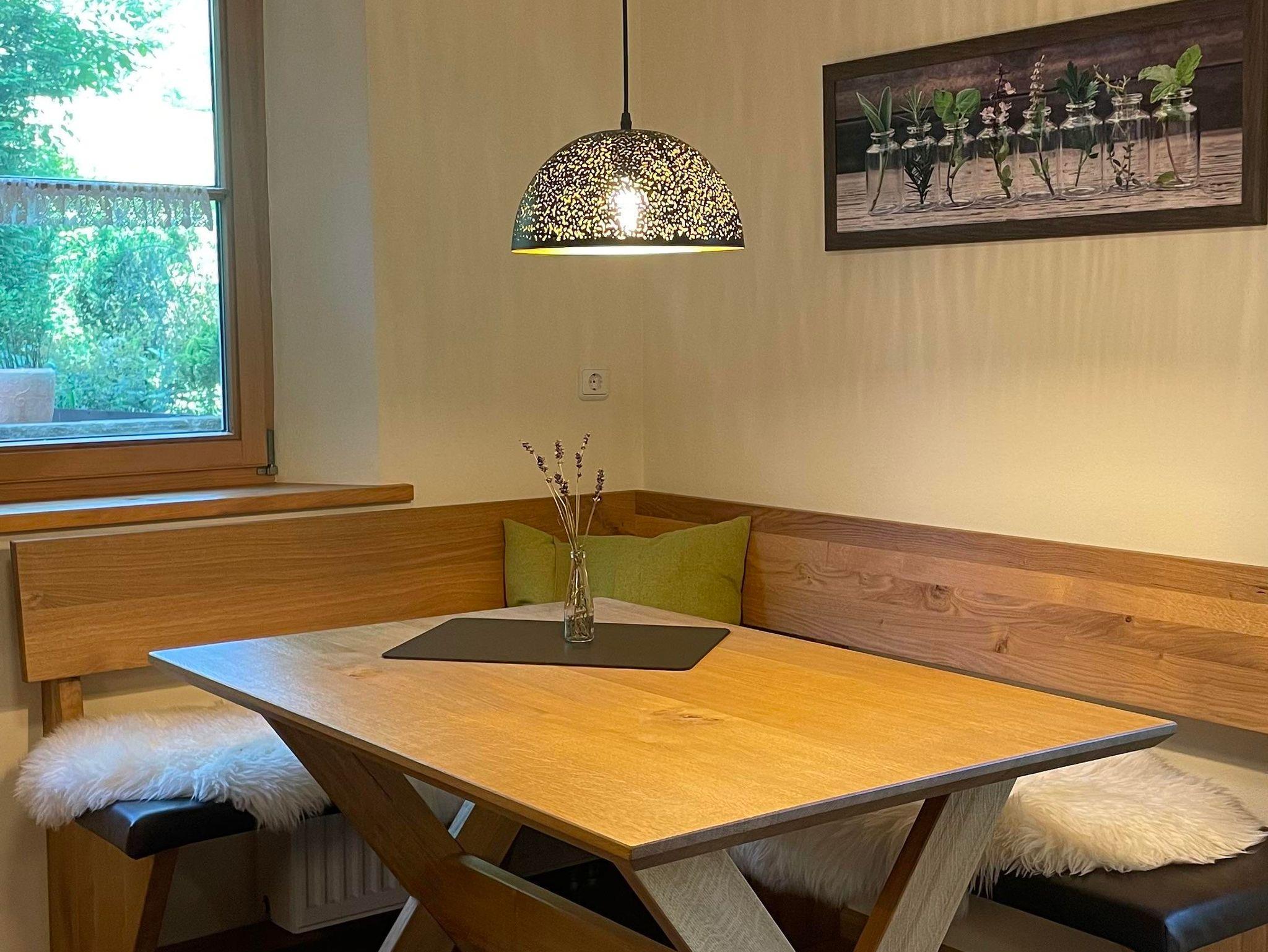 Die Ferienwohnung bietet Platz für bis zu 2 Personen und ist ausgestattet mit einer nach Westen ausgerichteten Wohnküche mit Eckbank und einer Terrassentür. Im Wohnzimmer befindet sich eine Lesebank und ein Schlafsofa. Das Fichten-Schlafzimmer mit Morgensonne (im Sommer), welches nach Osten ausgerichtet ist, ist voll verdunkelbar. Das Badezimmer ist mit einer Regendusche, WC und einem Aussenfenster ausgestattet.