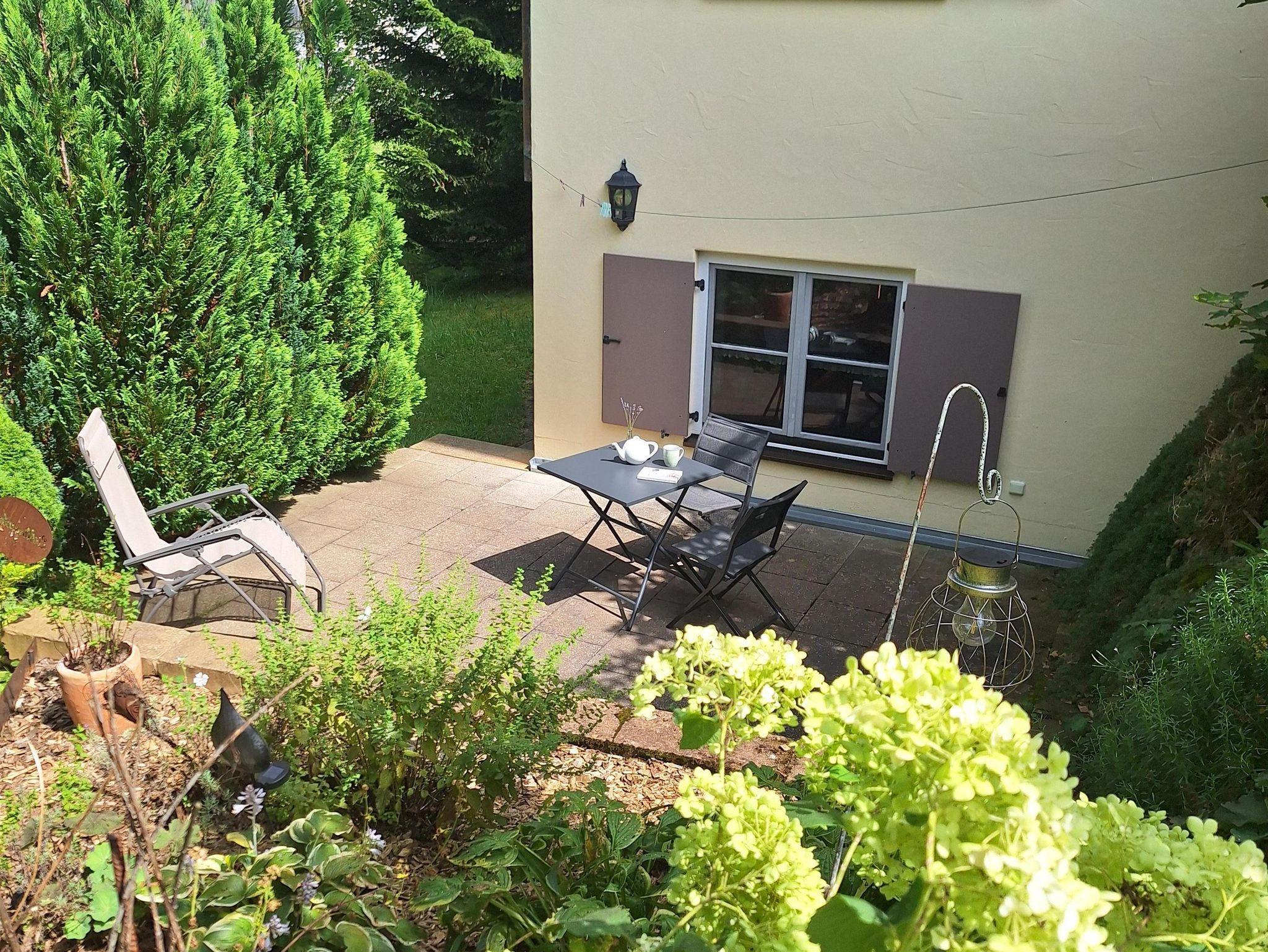 Der Lieblingsplatz verfügt über zwei Terrassen. Eine Frühstücksterrasse (Osten) und einer Hauptterrassse mit Nachmittag/Abendsonne.