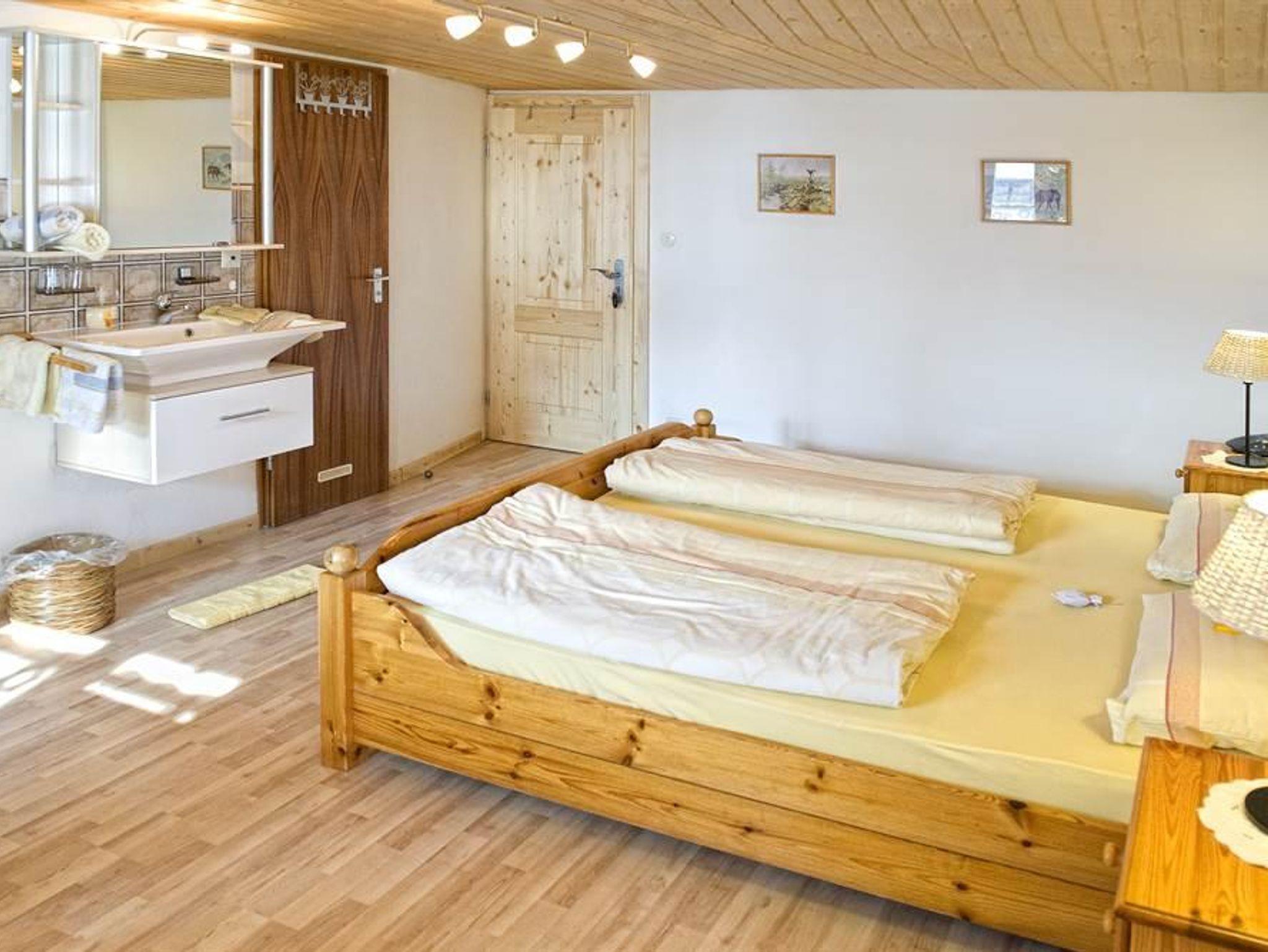 Das Doppelzimmer - Mittag - ist nach dem Berg benannt, den man von diesem Zimmer aus sehen kann. Unser Zimmer Mittag ist ganz in gelb behalten und ist ein Doppelzimmer mit Balkon - 8qm groß - die Einrichtung ist in hellem Fichtenholz gehalten und hat blaugemusterte Polsterstühle und einen blauen Sessel mit dazugehöriger Steh-und Leselampe. Das Zimmer ist nach Süden ausgerichtet, jedoch durch ein langes Vordach auch an heißen Sommertagen kühl. Kostenloses WLAN im ganzen Haus Auch aus diesem Zimmer haben Sie einen schönen Blick in den Garten.