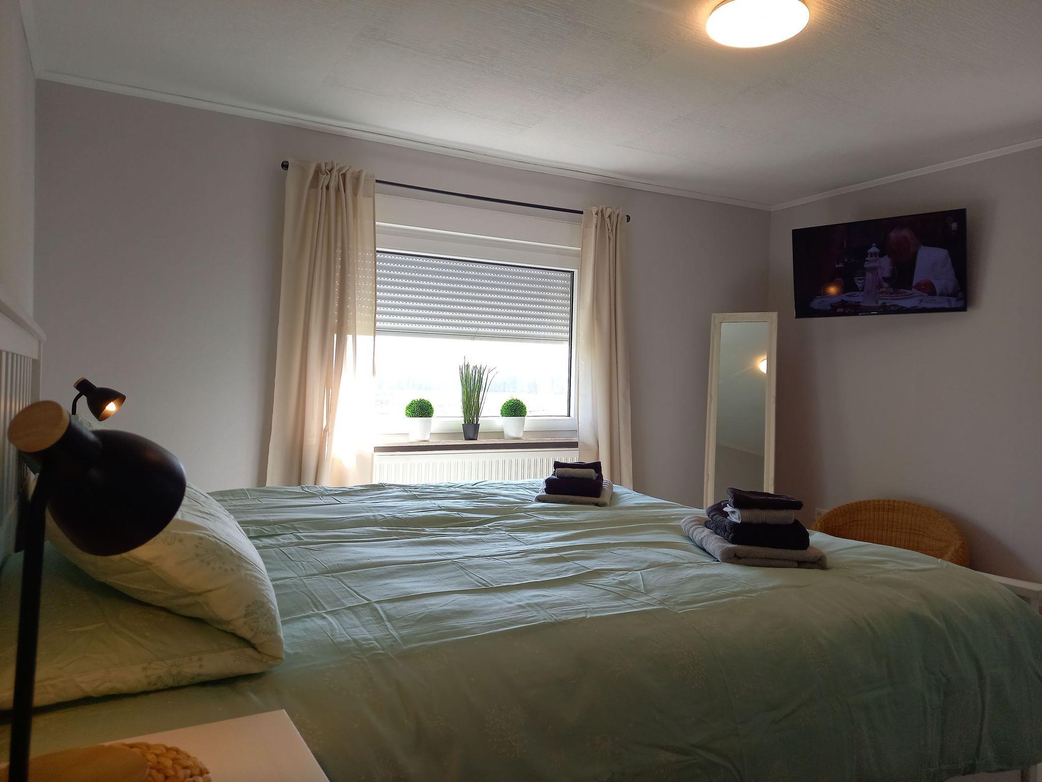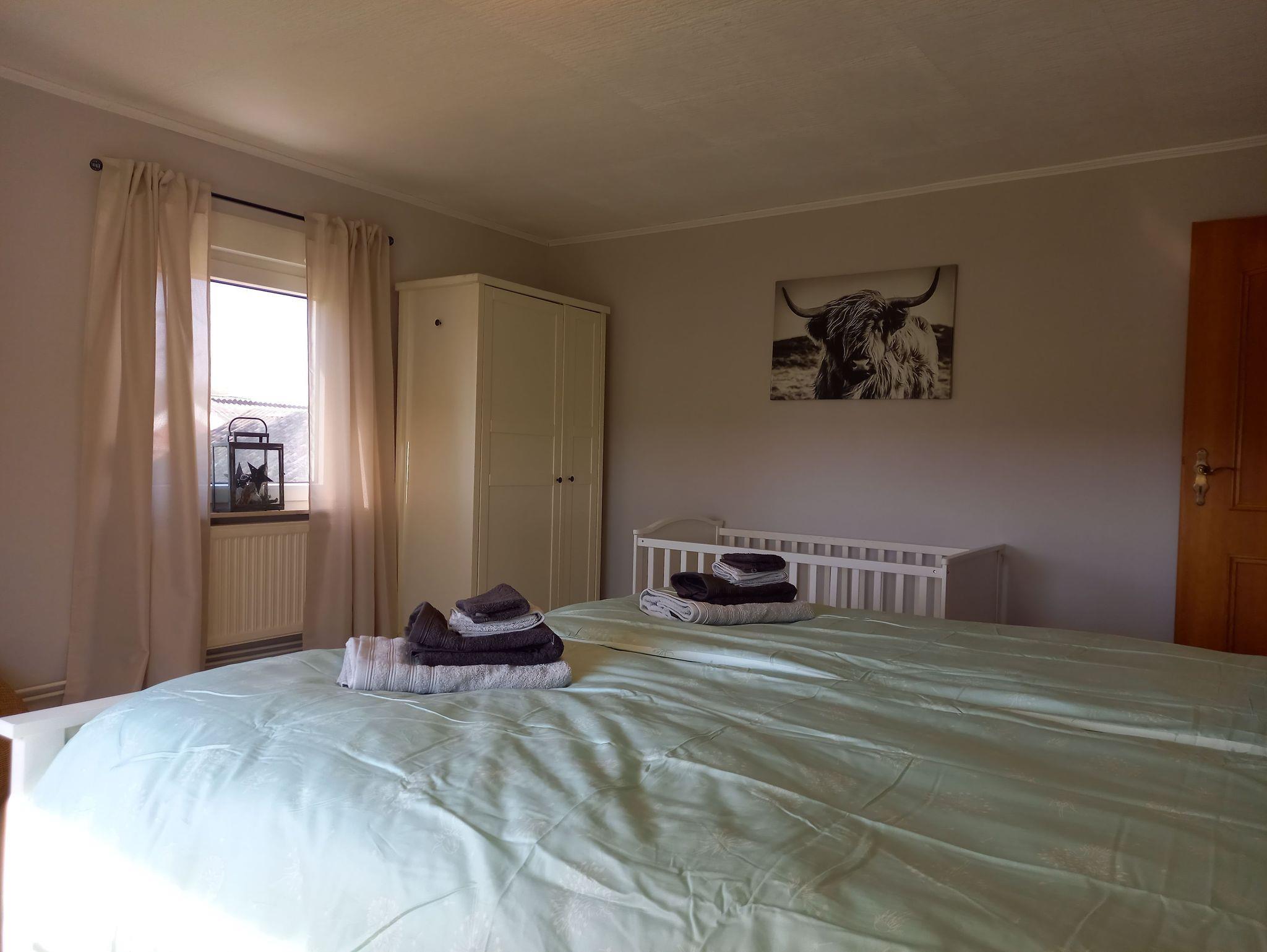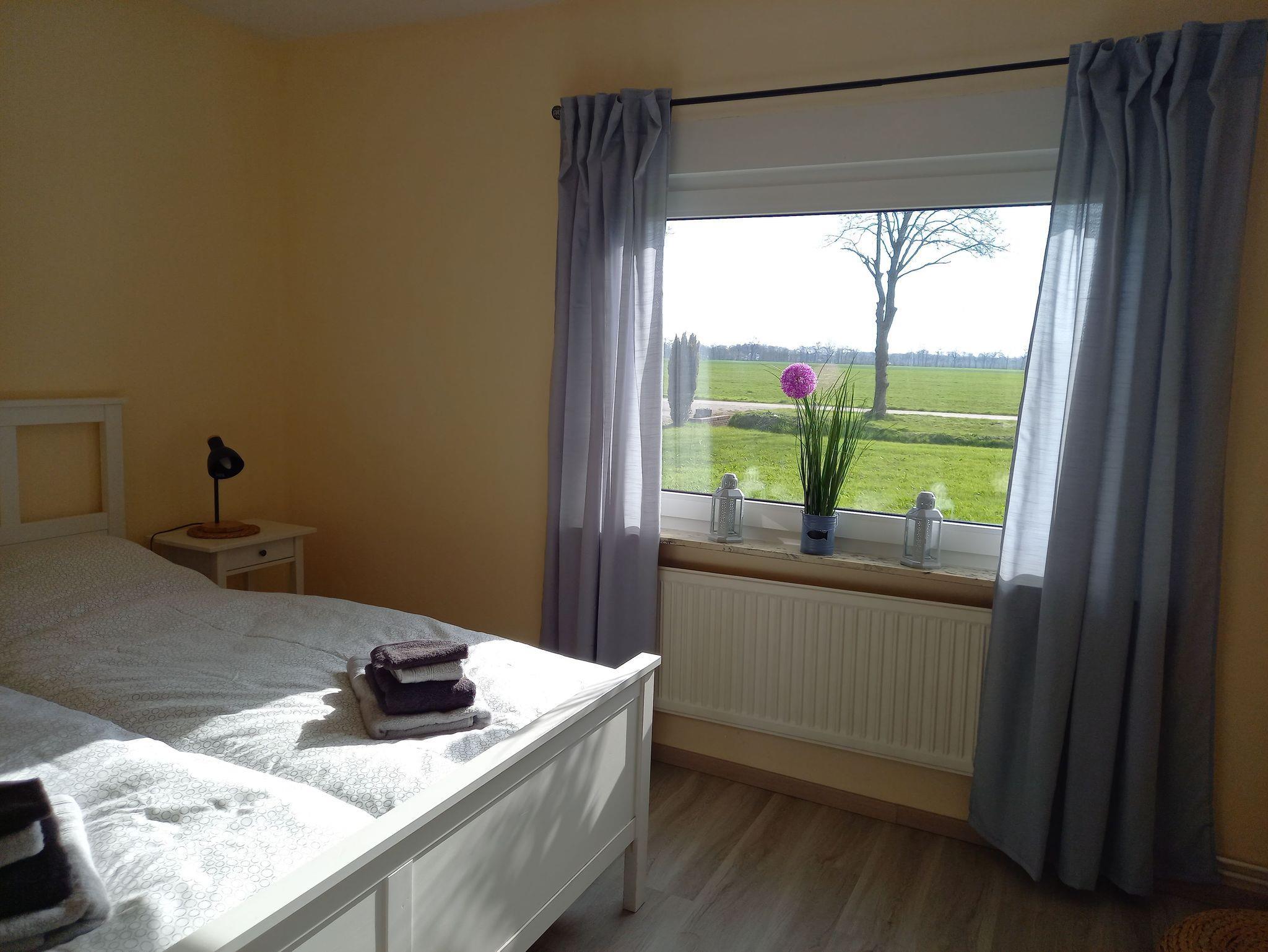 Dat Landhuus verfügt über 4 Schlafzimmer (3 Doppelzimmer/Bettengröße 1,80 x 2,00m und ein Zweitbettzimmer/Bettengröße 0,90 x 2,00m). 1 Doppelzimmer befindet sich im Erdgeschoss, 2 Doppelzimmer und das 1 Zweitbettzimmer befinden sich im Obergeschoss, zwei Bäder, davon eins mit ebenerdiger Dusche/WC im Erdgeschoss und 1 weiteres mit Badewanne/WC im Obergeschoss. Wir behalten uns vor, bei einer Buchung von 2 bis 4 Personen, nicht alle aufgeführten Schlafzimmer vorzubereiten. Die Auswahl und Anzahl der Schlafzimmer wird vor Anreise individuell mit dem Gast abgestimmt. Für ein Kleinkind bis 3 Jahre steht ein Kinderbett zur Verfügung. Eine voll ausgestattete Küche, 1 Esszimmer, 1 Wohnzimmer mit traumhaften Ausblick über die Landschaft sowie eine gemütliche Terrasse mit Markise. Auf der Terrasse können Sie die Sonne genießen und die Seele baumeln lassen oder auf der Wiese den Kühen beim Grasen zuschauen. Ein Gartenhaus mit Spielzeug Trettrecker, Roller, Rutsche usw.) ist vorhanden, Kinder haben auf dem riesigen Grundstück genug Platz zum Spielen und Toben. Ein abschließbarer Fahrradraum ist vorhanden.