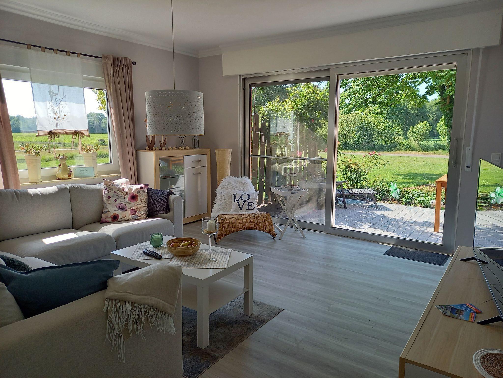 Dat Landhuus verfügt über 4 Schlafzimmer (3 Doppelzimmer/Bettengröße 1,80 x 2,00m und ein Zweitbettzimmer/Bettengröße 0,90 x 2,00m). 1 Doppelzimmer befindet sich im Erdgeschoss, 2 Doppelzimmer und das 1 Zweitbettzimmer befinden sich im Obergeschoss, zwei Bäder, davon eins mit Dusche/WC im Erdgeschoss und 1 weiteres mit Badewanne/WC im Obergeschoss. Für ein Kleinkind bis 1 Jahr steht ein Kinderbett zur Verfügung. Eine voll ausgestattete Küche, 1 Esszimmer, 1 Wohnzimmer mit traumhaften Ausblick über die Landschaft sowie eine gemütliche Terrasse. Auf der Terrasse können Sie die Sonne genießen und die Seele baumeln lassen oder auf der Wiese den Kühen beim Grasen zuschauen. Kinder haben auf dem riesigen Grundstück genug Platz zum Spielen und Toben. Ein abschließbarer Fahrradraum ist vorhanden.