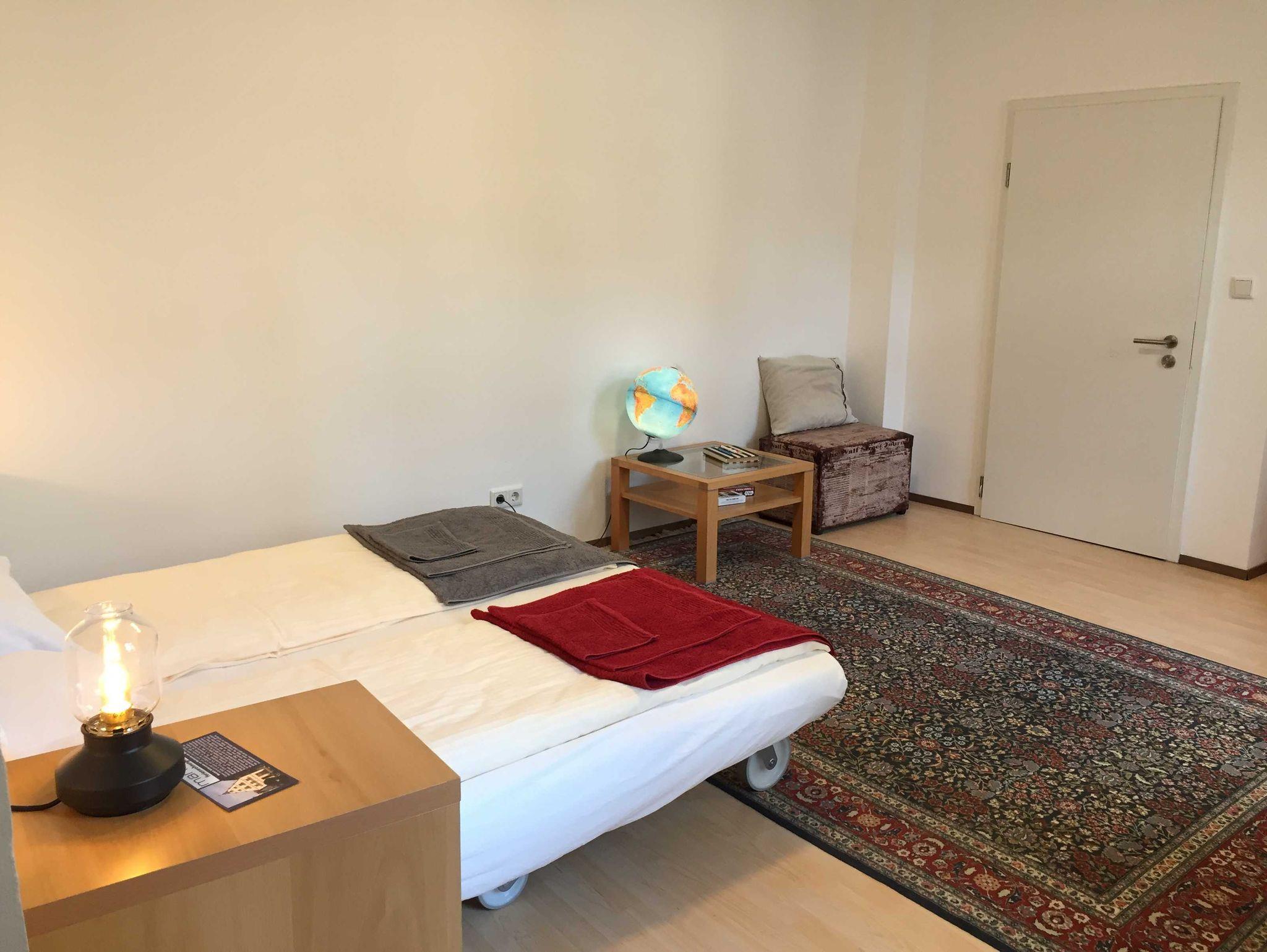 Zentral am Marktplatz (Fußgängerzone), aber ruhig am Innenhof liegt unsere Nichtraucher-Ferienwohnung Scalina, die für 2 bis 4 Personen gut geeignet ist. Über eine relativ steile und schmale Treppe (italienisch „Scalina“) gelangt man in die im ersten Stock gelegene Wohnung. Nach dem Öffnen der Wohnungstür betritt man direkt den ersten Raum, einen Schlafraum mit Einzelbetten für zwei Personen. Von hier gelangt man in einen Durchgangsraum mit einem Doppelstockbett. An diesen schließen sich das Bad mit Dusche und WC an, sowie der hintere Raum. Hier befindet sich ein Essbereich und eine Küchenzeile mit Mikrowelle, Kühlschrank und Spüle und eine Couch. Bis auf den hinteren Raum und das Bad sind alle Räume Durchgangszimmer. Die Wohnung befindet sich in einem der ältesten und zugleich schönsten Häuser der Stadt, einem unter Denkmalschutz stehenden Bürgerhaus aus dem Jahr 1649. Im selben Haus bieten wir noch die jeweils für bis zu 6 Personen geeigneten Wohnungen „Anna“ und „Johan“ an. Zahlreiche verschiedene Einkaufsmöglichkeiten, Gaststätten und Restaurants sind in nächster Nähe vorhanden, der Emsradweg führt in 100 Meter Entfernung praktisch direkt am Haus vorbei. Zahlreiche weitere Rad- und Wanderwege beginnen in Rheine bzw. führen hier vorbei. Rheine eignet sich aus sehr gut für Ausflüge in das umgebende Münsterland, das Emsland und Osnabrücker Land oder die nahen Niederlande. Haustiere sind leider nicht erlaubt. WLAN ist überall vorhanden.