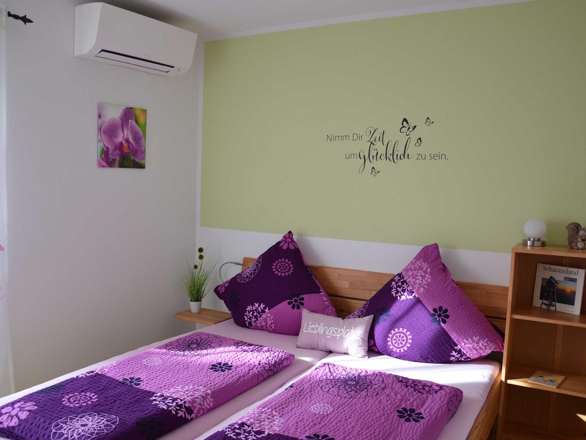 Unsere modern eingerichete Ferienwohnung Nr. 2 mit Balkon verfügt über zwei separate Schlafzimmer mit jeweils einem 1,80 x 2,0 m großen Doppelbett.