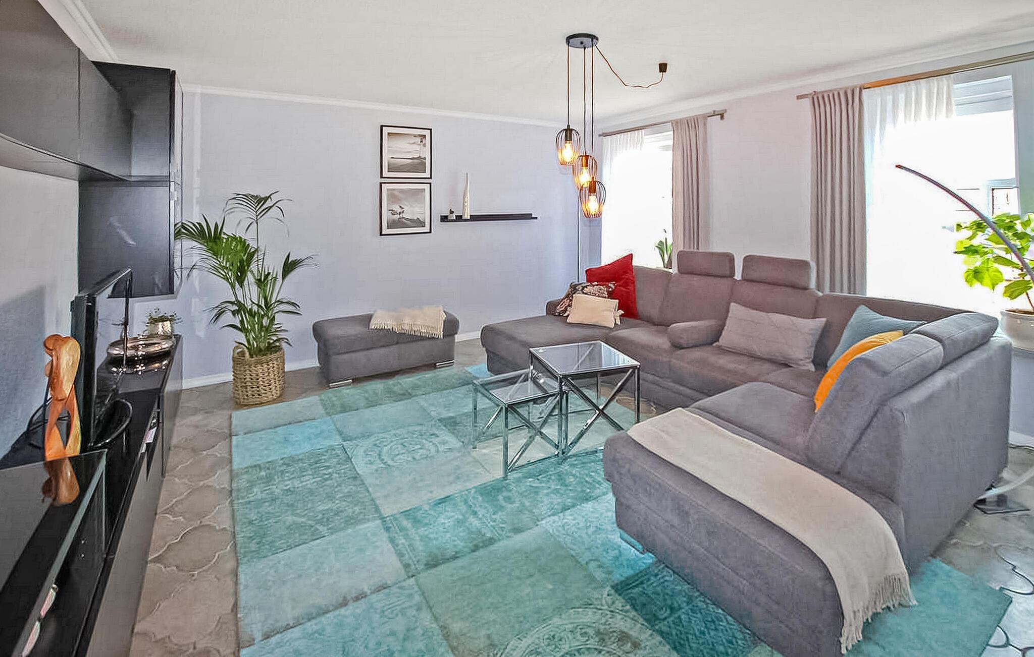 Die ca. 70 qm große, sehr geschmackvoll eingerichtete Nichtraucher Wohnung für bis zu 3 Personen ist ausgestattet mit einem großen Wohnraum Wohnlandschaft (Schlafcouch - Aufbettung, Flachbild-TV), einem Schlafzimmer (Doppelbett, großer Schrank, Lese-Ecke), moderner Küche (E-Herd, Backofen, Spülmaschine, Kühlschrank mit Tiefkühlteil, Mikrowelle, div Küchenkleingeräte), einem geräumigen Bad (Dusche, WC, Fön), einer Diele mit Essplatz sowie Fußbodenheizung.