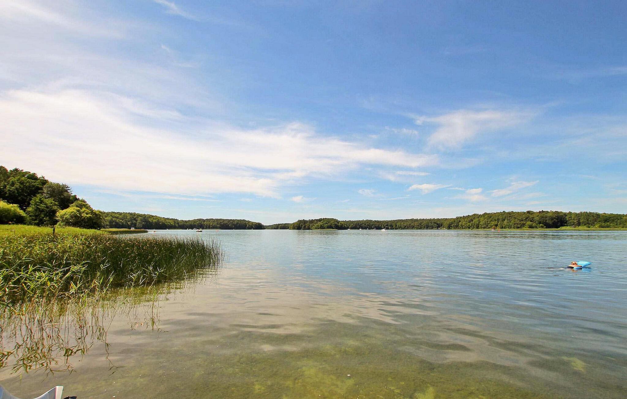 Das weitläufige Grundstück mit diversen Sitz- und Liegeflächen erstreckt sich bis zum See, an dem allen Gästen ein eigener Bootssteg, Ruder- bzw. Paddelboote zum Verleih (gegen Gebühr) und Angelmöglichkeiten (Angelschein in Zechliner Hütte erhältlich) zur Verfügung stehen. Ausreichende Parkplätze, Fahrrad-Unterstell- und Abstellplätze, Grill, Sonnenliegen sowie W-LAN sind ebenfalls vorhanden. Eine große überdachte Gemeinschafts-Sitzecke kann von allen Gästen zum Feiern, Klönen, Grillen oder auch Tischtennis spielen genutzt werden.