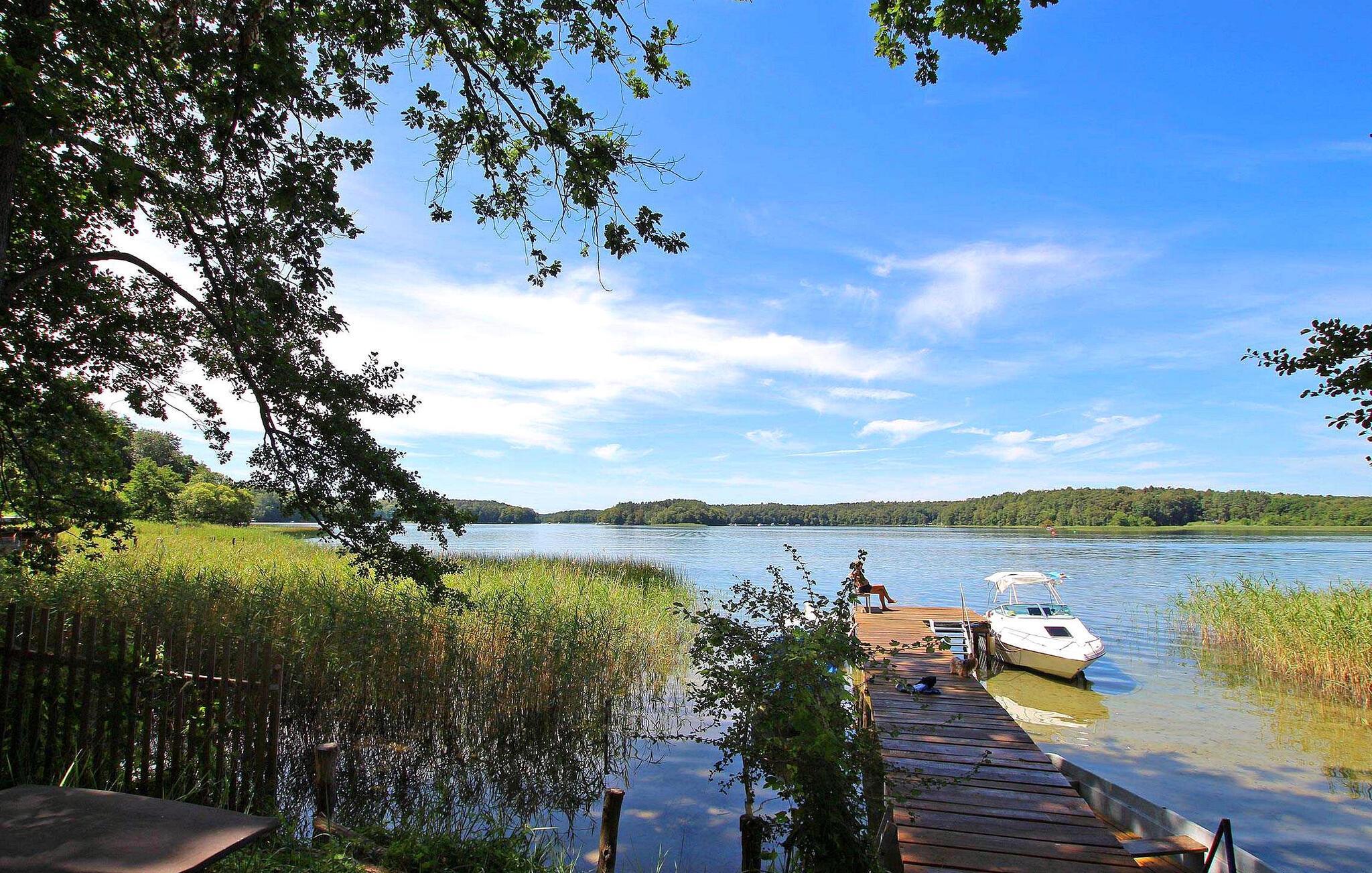 Das weitläufige Grundstück mit diversen Sitz- und Liegeflächen erstreckt sich bis zum See, an dem allen Gästen ein eigener Bootssteg, Ruder- bzw. Paddelboote zum Verleih (gegen Gebühr) und Angelmöglichkeiten (Angelschein in Zechliner Hütte erhältlich) zur Verfügung stehen. Ausreichende Parkplätze, Fahrrad-Unterstell- und Abstellplätze, Grill, Sonnenliegen sowie W-LAN sind ebenfalls vorhanden. Eine große überdachte Gemeinschafts-Sitzecke kann von allen Gästen zum Feiern, Klönen, Grillen oder auch Tischtennis spielen genutzt werden.