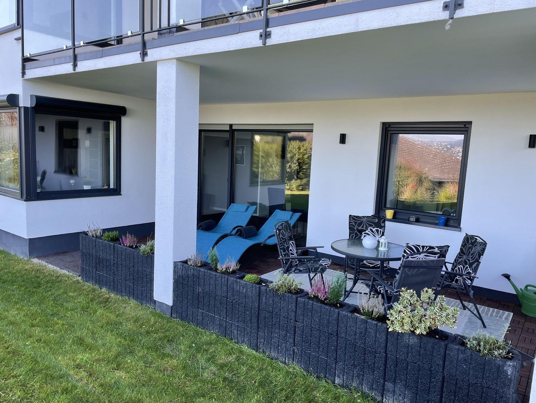 Die Wohnung verfügt über ein separates Schlafzimmer. Ein Beistellbett/ Kinderbett können Sie auf Nachfrage erhalten.Das Badezimmer ist mit einer großzügigen ebenerdigen Dusche und einer Badewanne ausgestattet und bietet somit viel Raum für Wellness und Entspannung. Der angrenzende Gemeinschaftsgarten mit separater Grillecke ist direkt von der Terrasse zu erreichen.