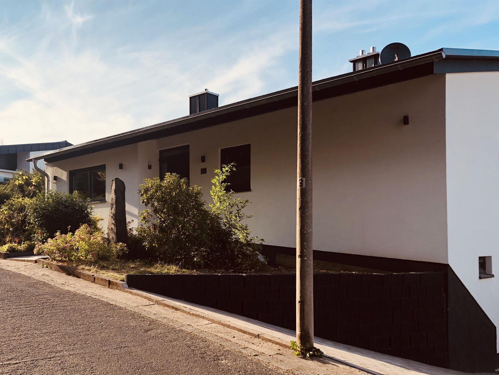 In dem 2019/2020 komplett sanierten Haus in ruhiger Lage in direkter Nähe zum Wald befinden sich unsere Ferienwohnungen Rheinpanorama und Wolfsdelle. Wanderungen der Traumpfade kann man direkt vom Haus aus starten.