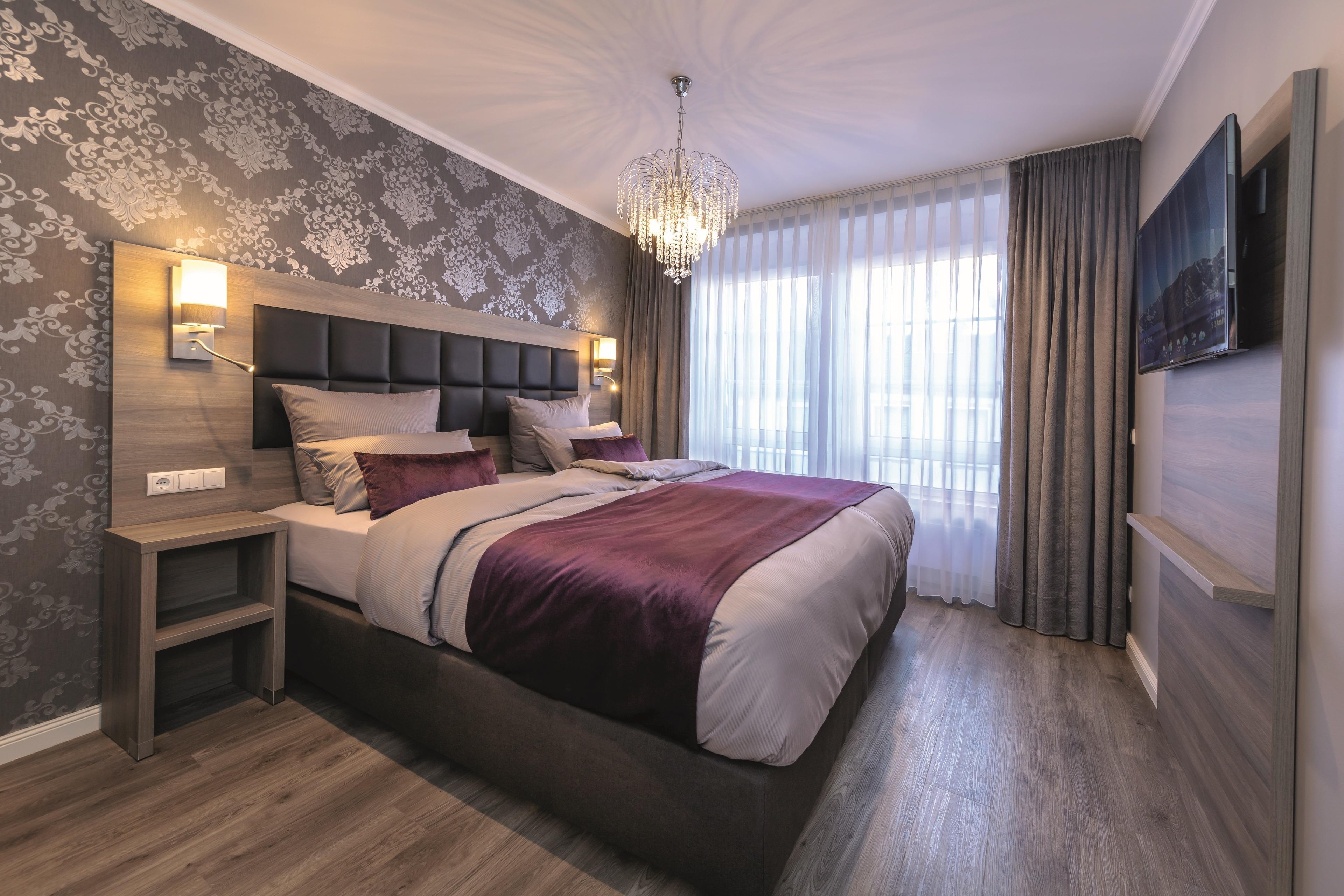 Im Haus Burgenheimat befinden sich 8 Apartments: 2 Princesize-Apartments F**** (20 - 30 m²), 1 Queensize-Apartment F*** (25 m²), 2 Queensize-Apartments F**** (30 - 40 m²) und 3 Kingsize-Apartments F**** (40 - 50 m²). Schlafen Sie wie ein König in den komfortablen überlangen Boxspringbetten (2,20 m) der Premium-Marke Royal Bedding®. Die Bettbreite beträgt in den Princesize-Apartments 1,00 m, in den Queensize-Apartments 1,60 m und in den Kingsize-Apartments 2,00 m. Alle Betten haben eine durchgängige extrahohe Matratze für besonderen Schlafkomfort. Im „Thronsaal“, dem modernen Badezimmer, erwartet Sie ein WC mit integrierter Lüftung, ein stilvolles Waschbecken und eine bodengleiche Dusche mit Regenbrause und Handbrause. Die Küche ist mit allem, was man braucht, ausgestattet. Bereiten Sie sich z.B. ein leckeres Frühstück mit dem Tefal Toast'n'Egg und brühen sich Ihren Kaffee mit der Senseo Switch entweder mit Filter oder mit Kaffeepad. Auf dem 4-Platten-Cerankochfeld lassen sich auch komplette Menüs zubereiten. Eine Mikrowelle mit Grillfunktion sorgt für Essen in Minutenschnelle. Und damit der Abwasch nicht lästig wird, steht eine kompakte Geschirrspülmaschine bereit. Durchdachte Annehmlichkeiten erwarten Sie in jedem Raum der Apartments: ein digitaler Türspion, USB-Anschlüsse an den Leuchten am Bett sowie am Schreibtisch, eine integrierte Toilettenlüftung, eine bodengleiche Dusche mit Regenbrause, ein Laptop-Safe, überlange Betten, extrahohe Matratzen, große UHD-Smart-TVs, vollausgestattete Küche inkl. kompaktem Geschirrspüler. Neben der Selbstverpflegung besteht die Möglichkeit am Frühstücksbuffet des Hotels teilzunehmen. Als Gast erhalten Sie außerdem für die Dauer Ihres Aufenthalts ein kostenfreies Gästeticket für die Nutzung des ÖPNV im Gebiet des VRM.