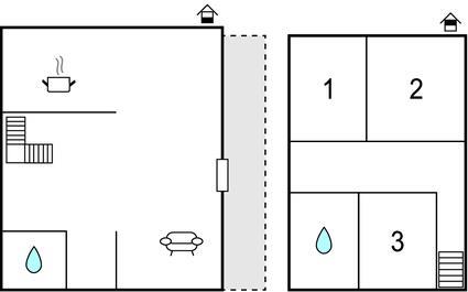 Das Ferienhaus steht auf einen 1.700 m² großen Grundstück und verfügt über drei Schlafräume. Der Kamin sorgt für gemütliche Abende. Das Haus, wie auch das Grundstück, ist Kinderfreundlich ausgestattet.