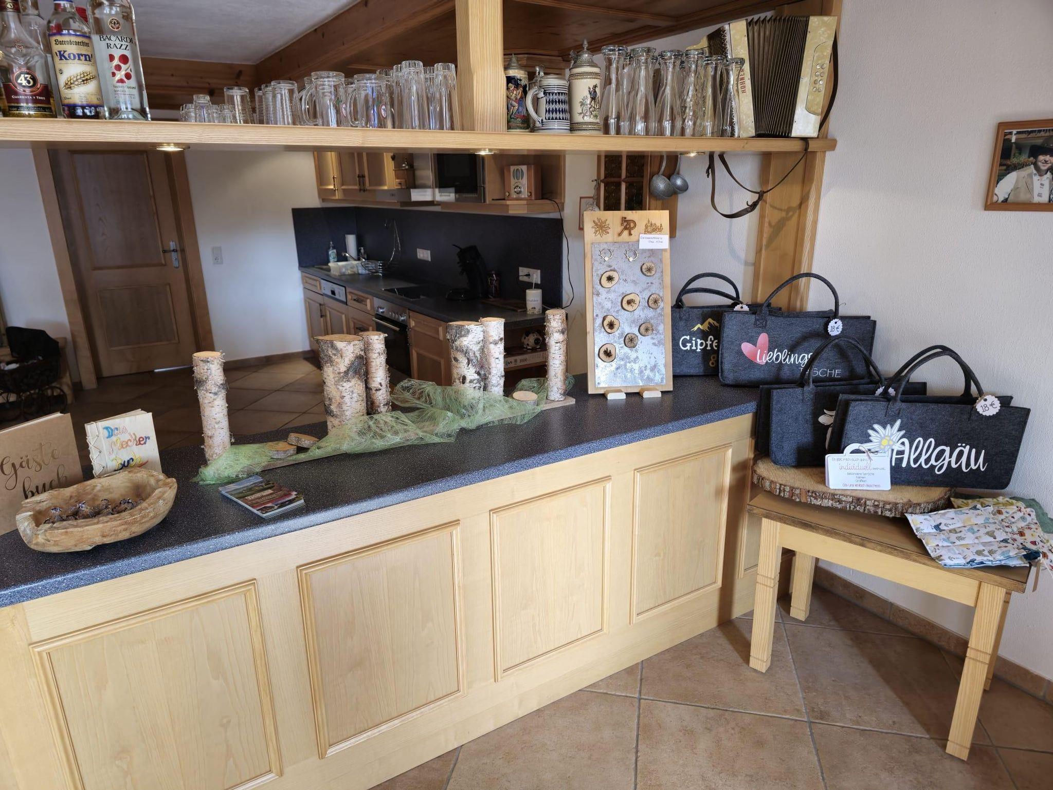 Sie befindet sich in der ersten Etage und bietet mit ihrem Ostbalkon einen traumhaften Blick auf den Forggensee und die Berge.